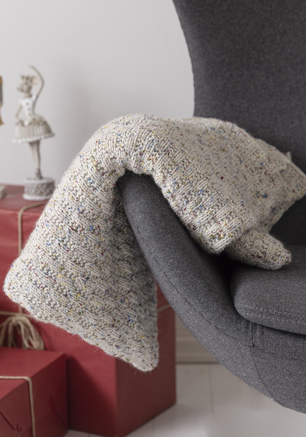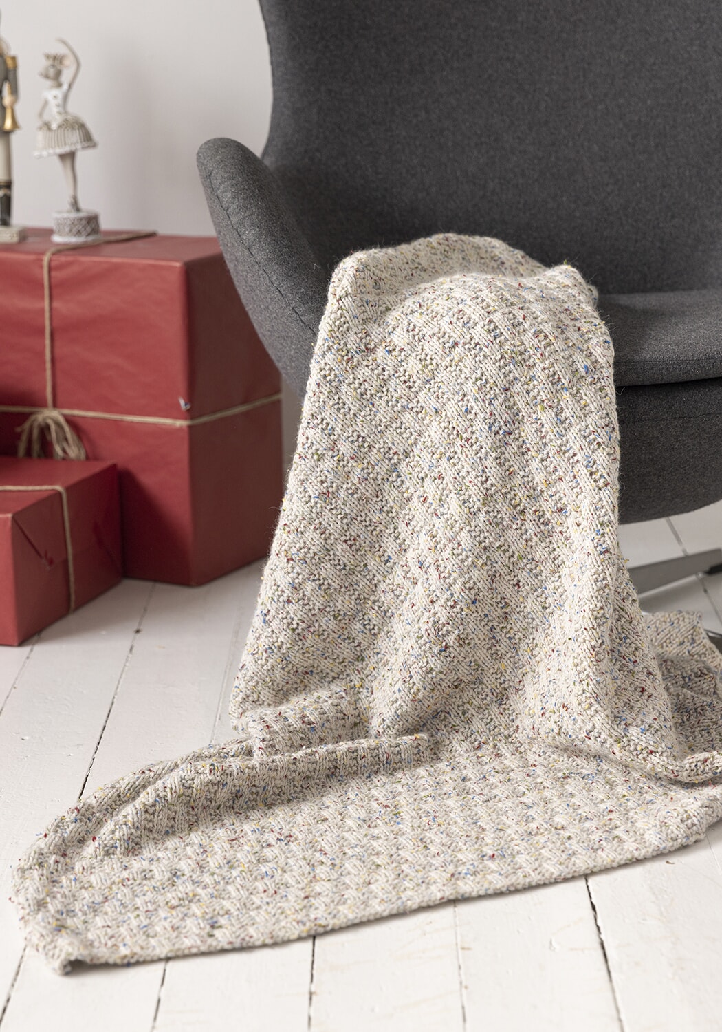 NB! Pleddet strikkes i dobbelt garn.