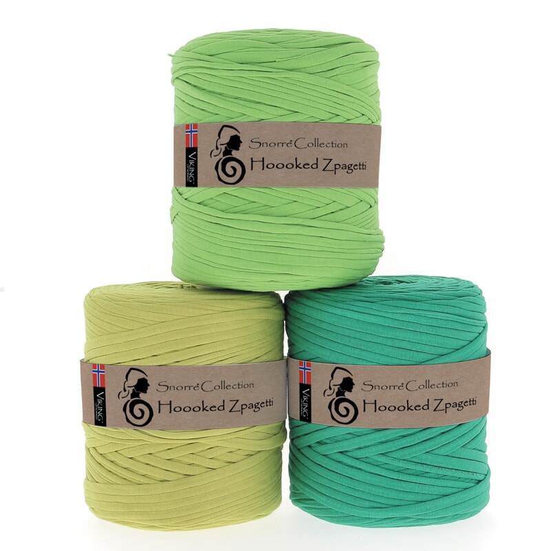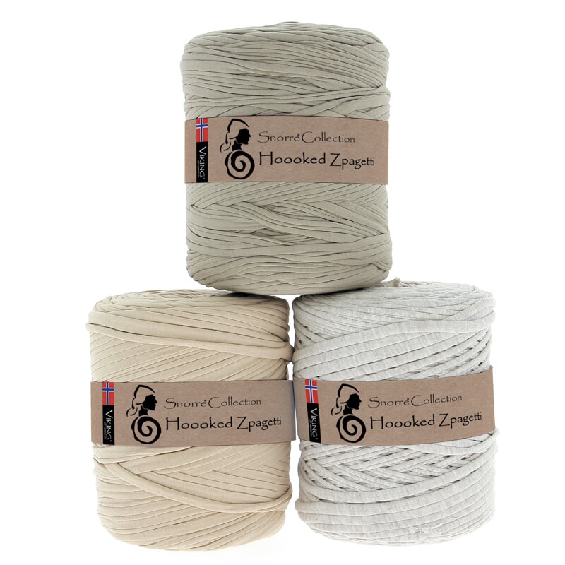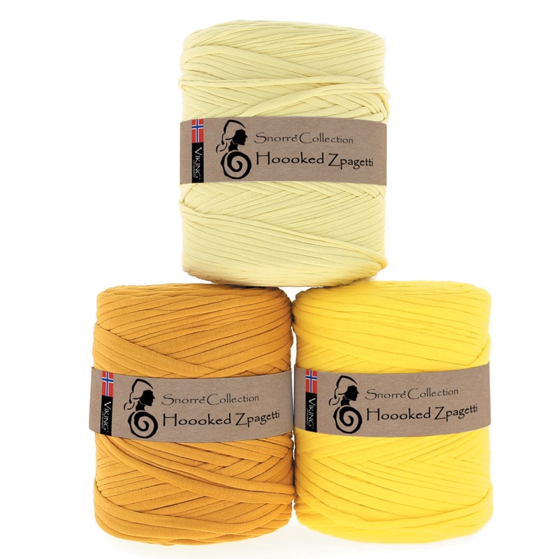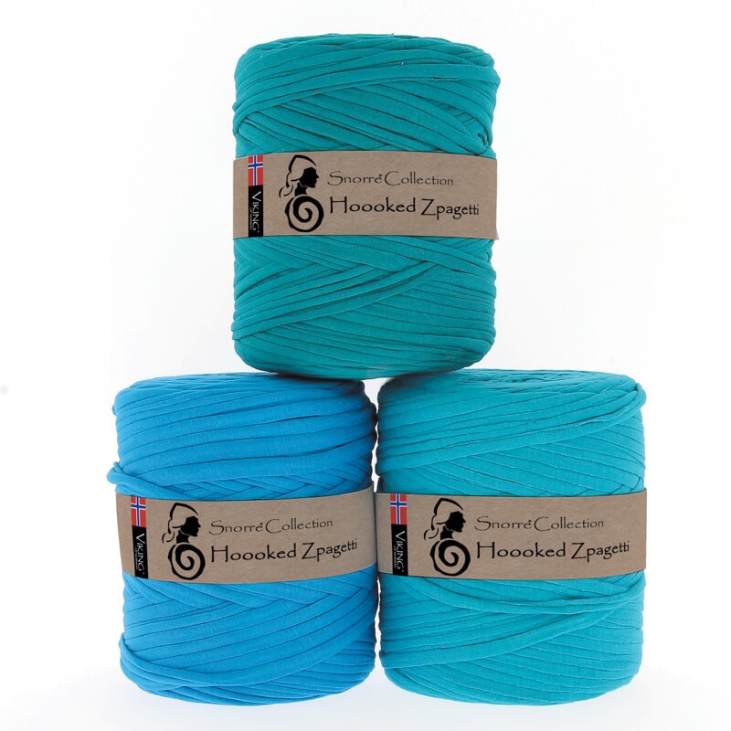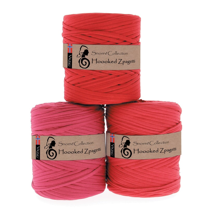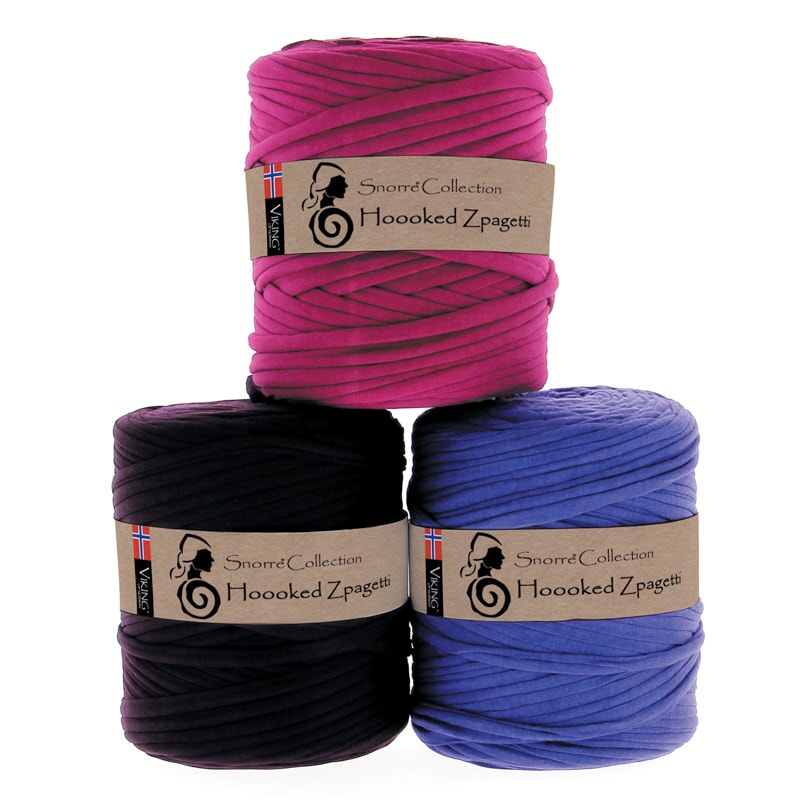 Zpagetti er det originale jersey t-skjortegarnet. Tekstilavfall fra europeiske motefabrikker kjøpes av Hoooked og velges ut,