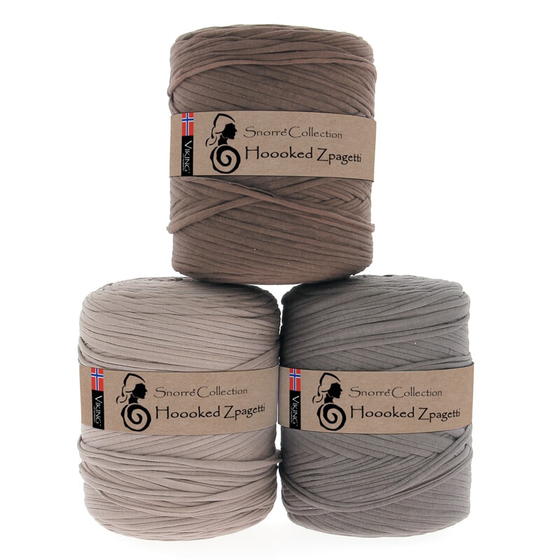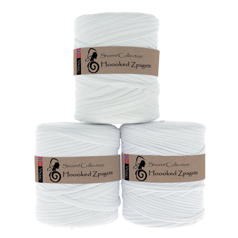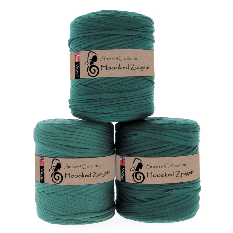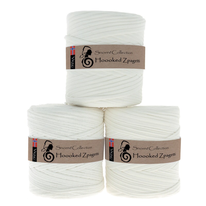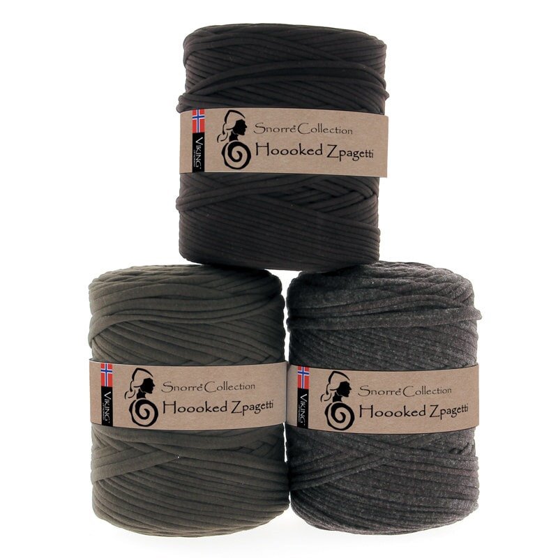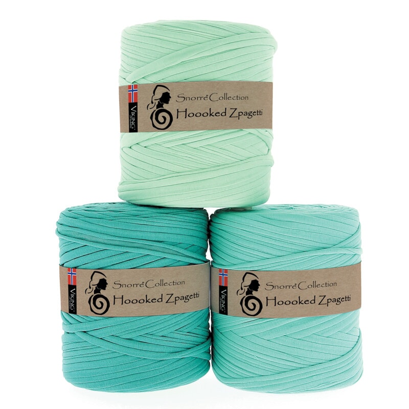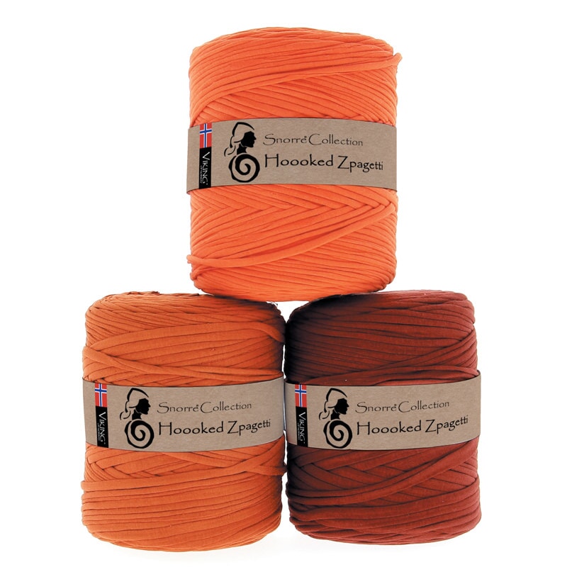 Zpagetti er det originale jersey t-skjortegarnet. Tekstilavfall fra europeiske motefabrikker kjøpes av Hoooked og velges ut,