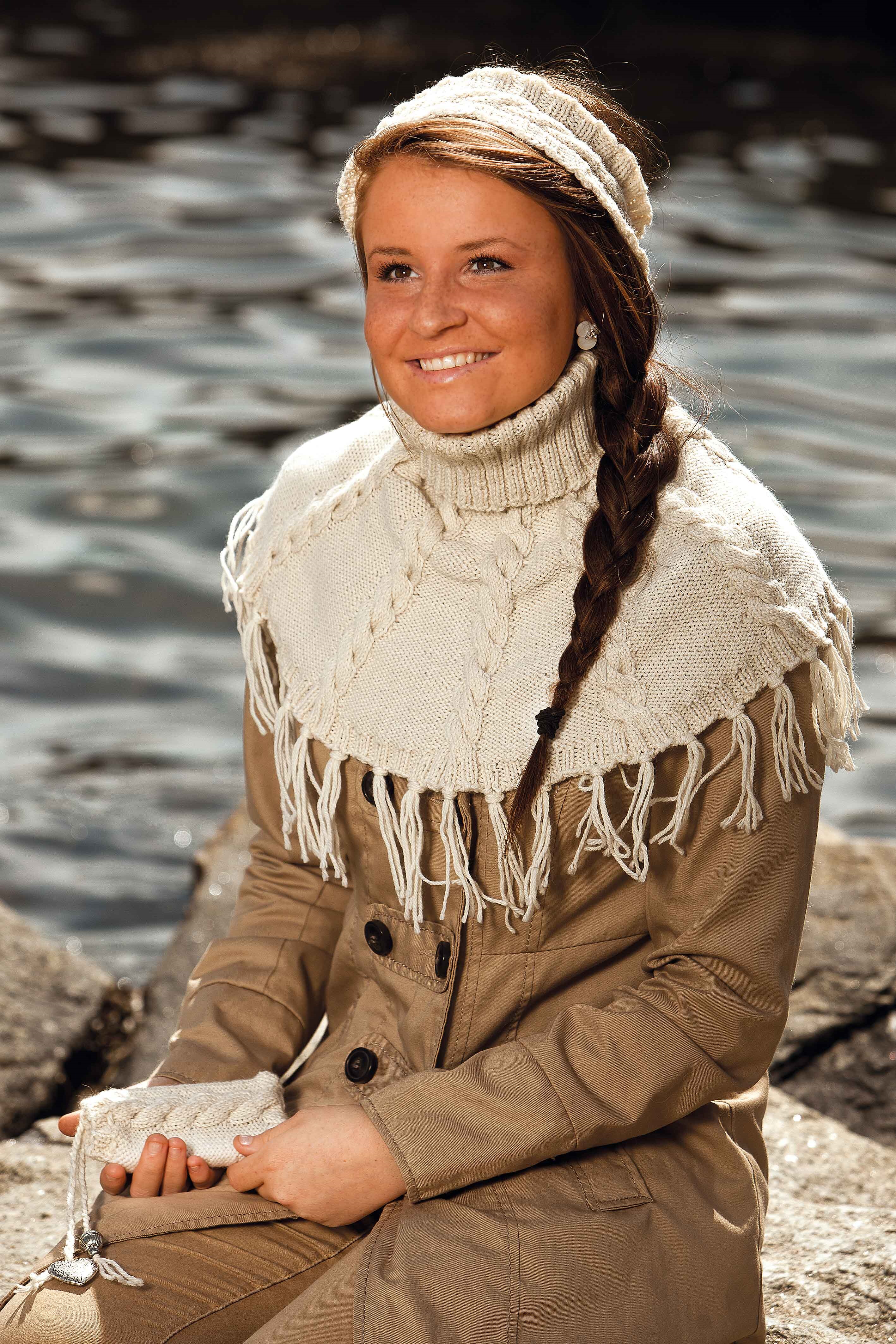 23 m glattstrikk i bredden på p nr 3½ måler ca 10 cm. Flette: 36 m i bredden med mønster I på p nr 3,5 måler ca 10 cm