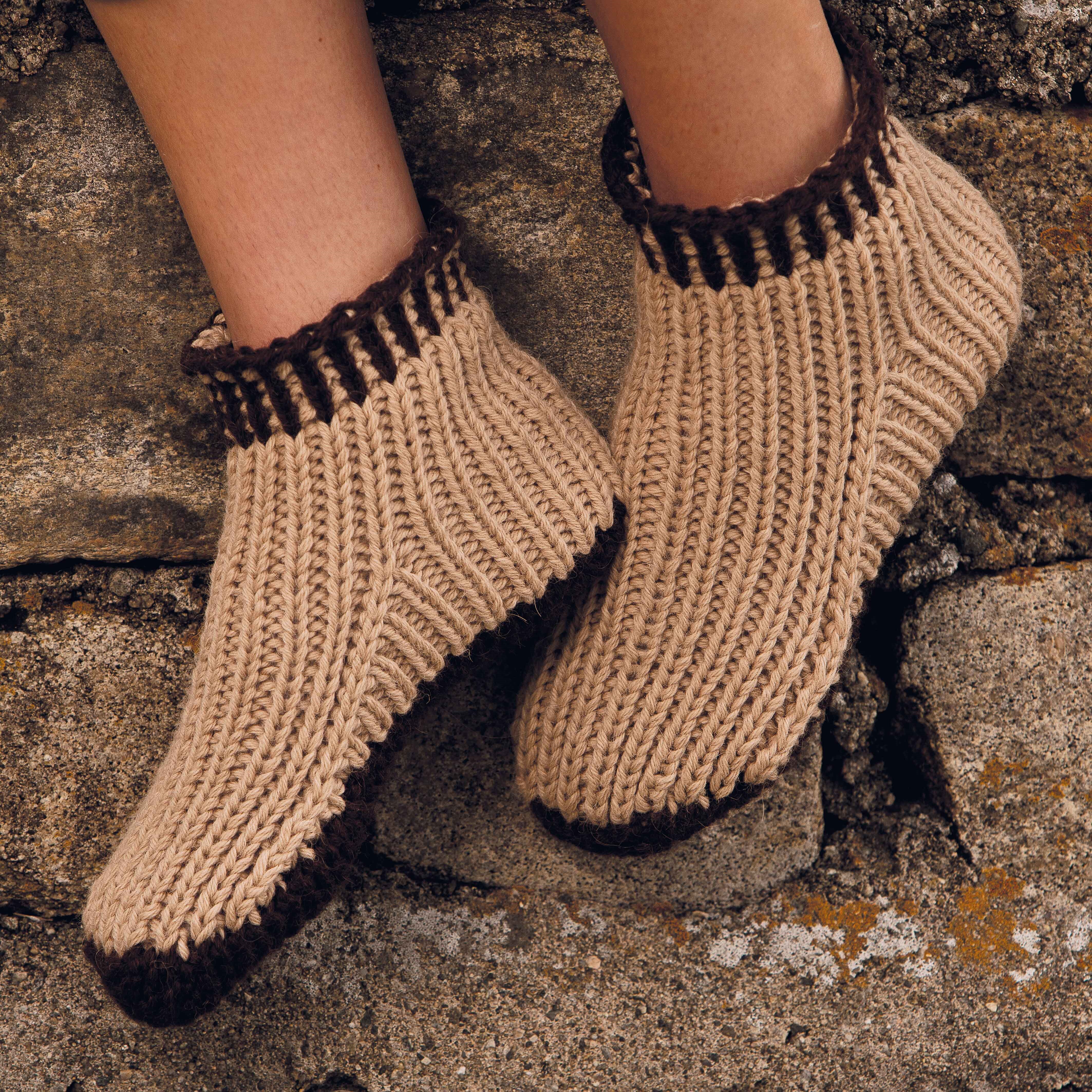 Det er enklere å strikke strømpene på 2 rundpinner i stedet for med strømpepinner.