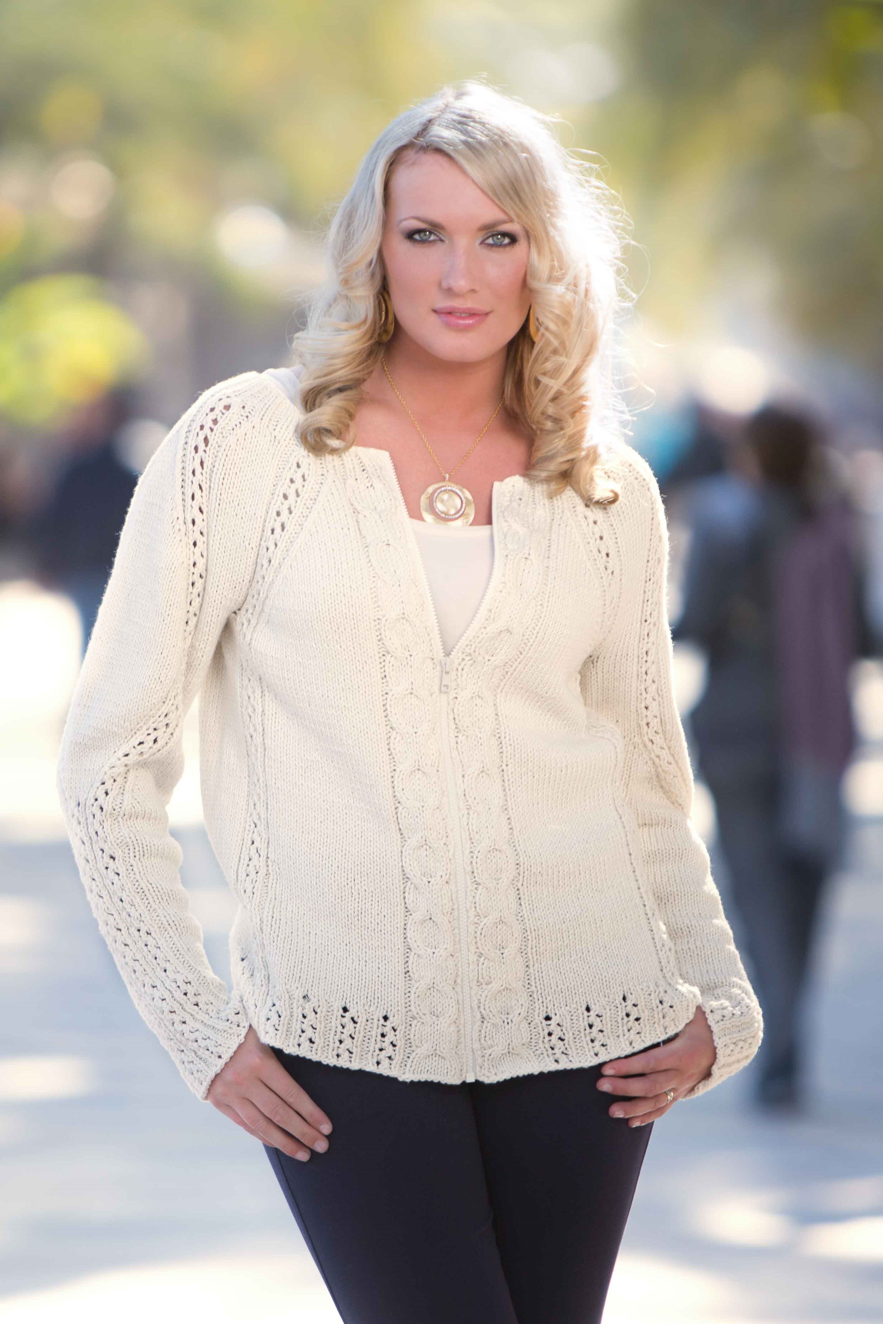 Viking Bjørk Jakke i dobbelt garn 1408-8 Størrelser: X-liten- liten- middels- stor- X-stor -XX-stor Overvidde: 85- 90 -95- 102- 110 -118 cm Hel lengde: 58- 60- 60 -62 -62 -63 cm Ermelengde: 48 -49 -50- 51- 51 -52 cm GARNALTERNATIV: Viking Bjørk (90% bomull, 10% merino ull), Viking Alpaca Silk (50% alpakka, 50% silke), nøster à 50 g. Naturhvitt nr 502: 12 -12- 13 -14 -15- 16 nøster Veiledende pinner og tilbehør: Rundp og strømpep nr 4 og 4 ½. + delbar glidelås ca 60-65 cm (mål det ferdige arb). Strikkefasthet: 18 m glattstrikk i bredden med dobbelt garn og p nr 4 ½ måler ca 10 cm. Husk at strikkefastheten må holdes hvis resultatet skal bli vellykket.