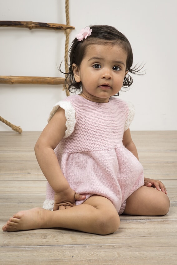 Viking Baby ull 1509-12 Vesla-Babydoll Størrelser:1-3-6-9-12-24 mnd Overvidde: 36-40-43-45-48-52 cm Hel lengde : 31-34-38-41-44-47 cm GARNALTERNATIV: Viking Baby Ull ( 100% merinoull, superwash), Alpaca Fine ( ( 85% superfine Alpaca-15% highland wool), nøster à 50 g. Lys rosa nr 364 : 2-3-3-3-4- nøster Hvitt nr 300: 1-1-1-1-1-1 nøste Veiledende pinner og tilbehør: Rundp og strømpep nr 2 ½ og 3 + 2-2-3-3-3-3 knapper Strikkefasthet: 28 m glattstrikk i bredden måler ca 10 cm.Husk at strikkefastheten må holdes hvis resultatet skal bli vellykket.