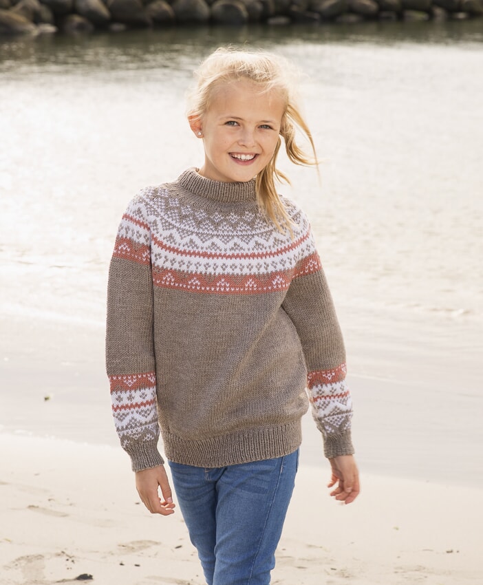 Strikkefasthet: 22 m glattstrikk i bredden på p nr. 3½ måler ca 10 cm.