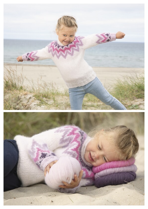 Strikkefasthet: 15 m glattstrikk i bredden på pinne nr 6 eller 7 måler ca 10 cm.