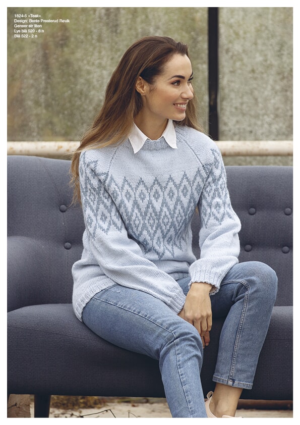 Strikkefasthet: 22 m glattstrikk i bredden på pinne nr 4 måler ca 10 cm.