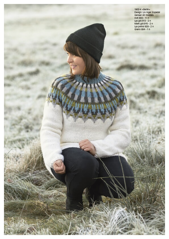 Strikkefasthet: 14 m glattstrikk i bredden på pinne nr 6 måler ca 10 cm.