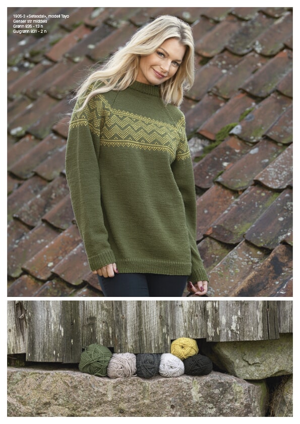 GARNALTERNATIV: Merino (100% Supersoft Merino ull, superwash), Alpaca Storm (40% Superfine Alpaca, 40% merino ull, 20% nylon), Sportsragg (60% ull, 20% akryl, 20% nylon), Superwash (100% superwash ull) nøster à 50 gr.