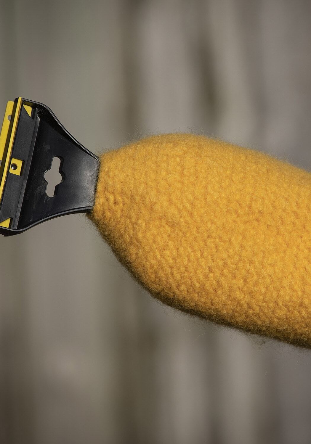 Vask kurven evt. sammen med et håndkle. Strekk arbeidet i fasong mens det enda er vått.