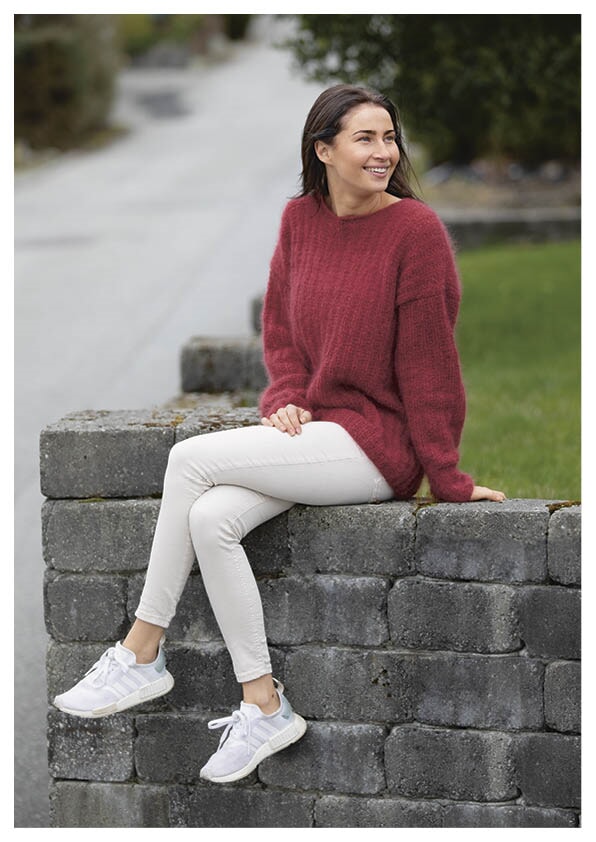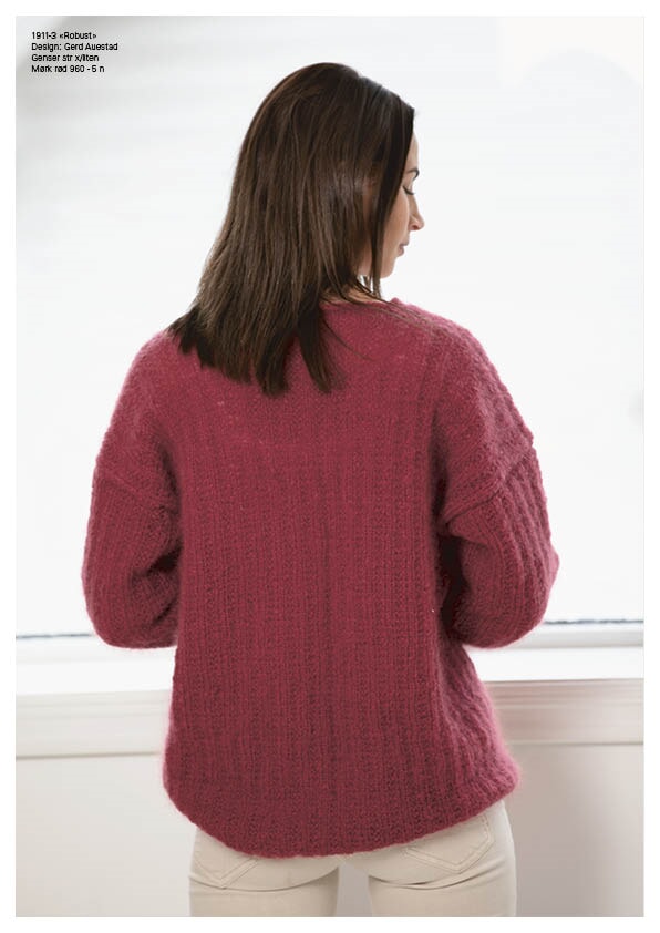 Strikkefasthet: 18 m glattstrikk i bredden på pinne nr 4 ½ måler ca 10 cm.