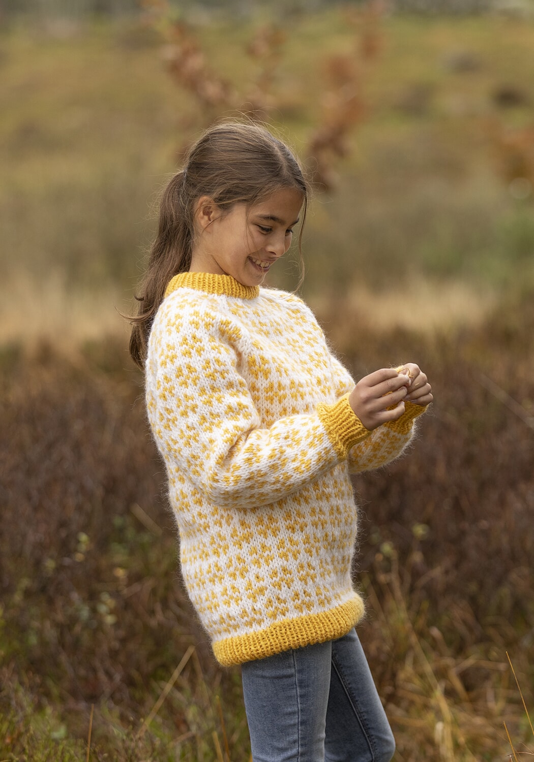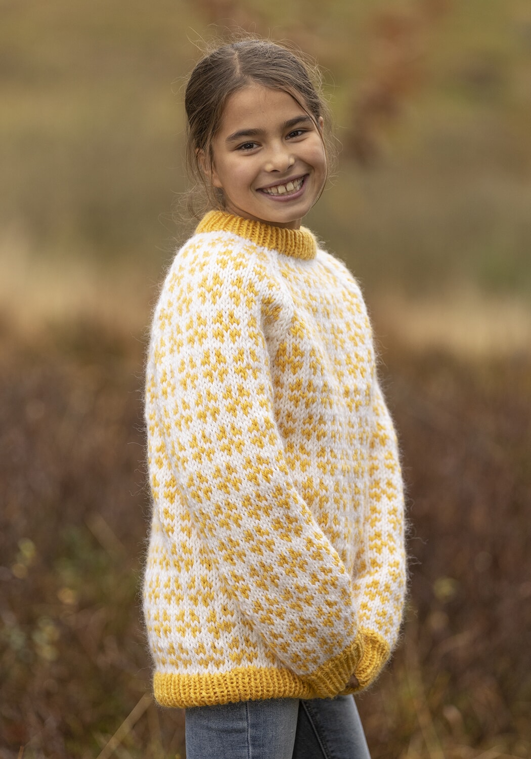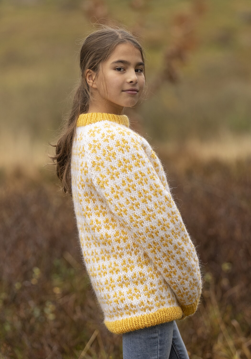 Strikkefasthet: 14 m glattstrikk i bredden på pinne nr 6 måler ca 10 cm. Husk at strikkefastheten må holdes hvis resultatet skal bli vellykket.
