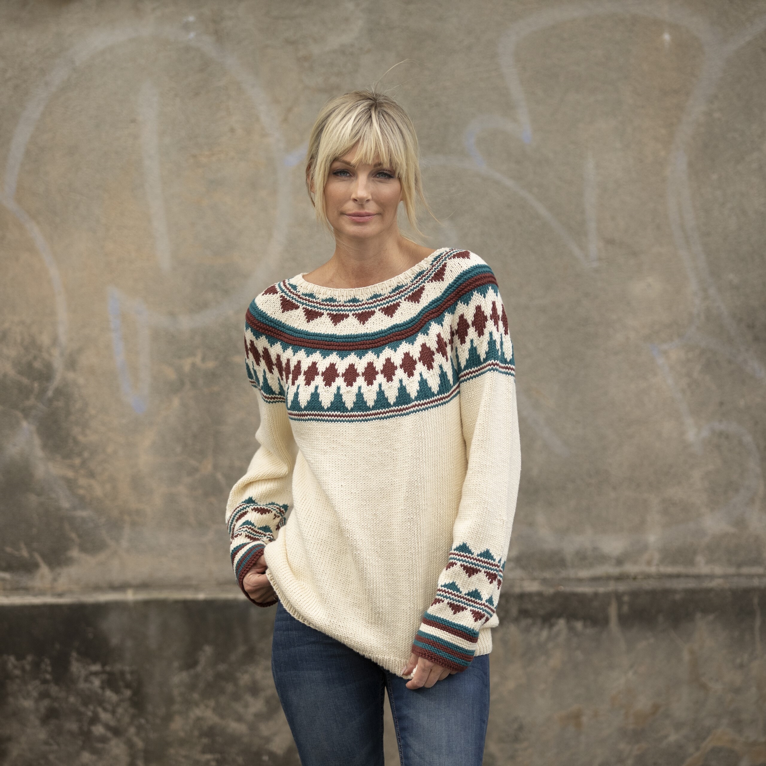 Veiledende pinner og tilbehør: Pinner nr 3 og 4. Strikkefasthet: 20 m glattstrikk i bredden på pinne nr 4 måler ca 10 cm.