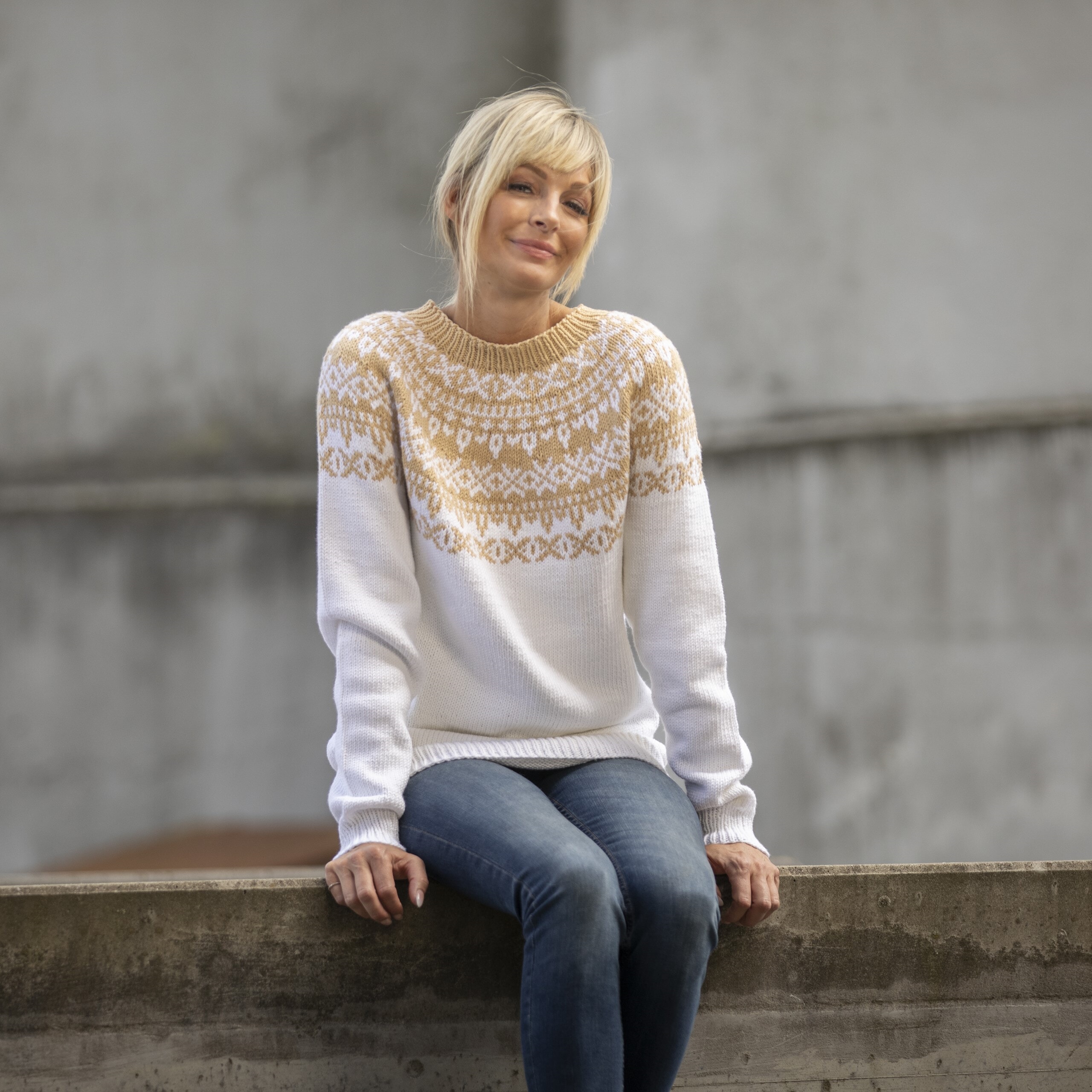Tips Når det strikkes mønster med 2 farger, er det veldig viktig at du alltid holder trådene likt på fingeren.