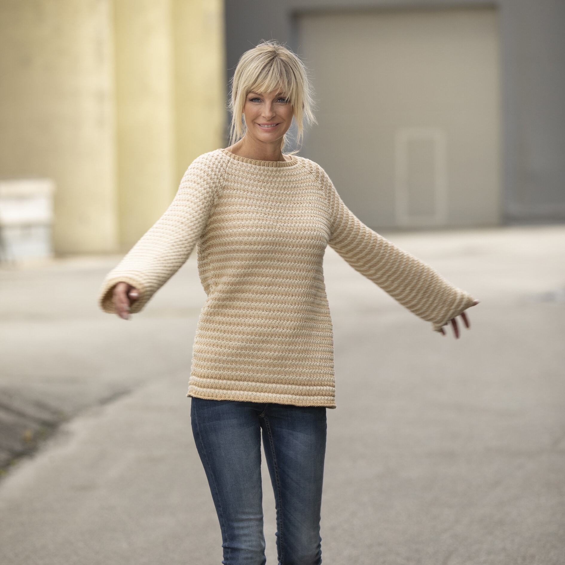 Veiledende pinner: Pinner nr 3 og 4. Strikkefasthet: 20 m glattstrikk i bredden på pinne nr 4 måler ca 10 cm.