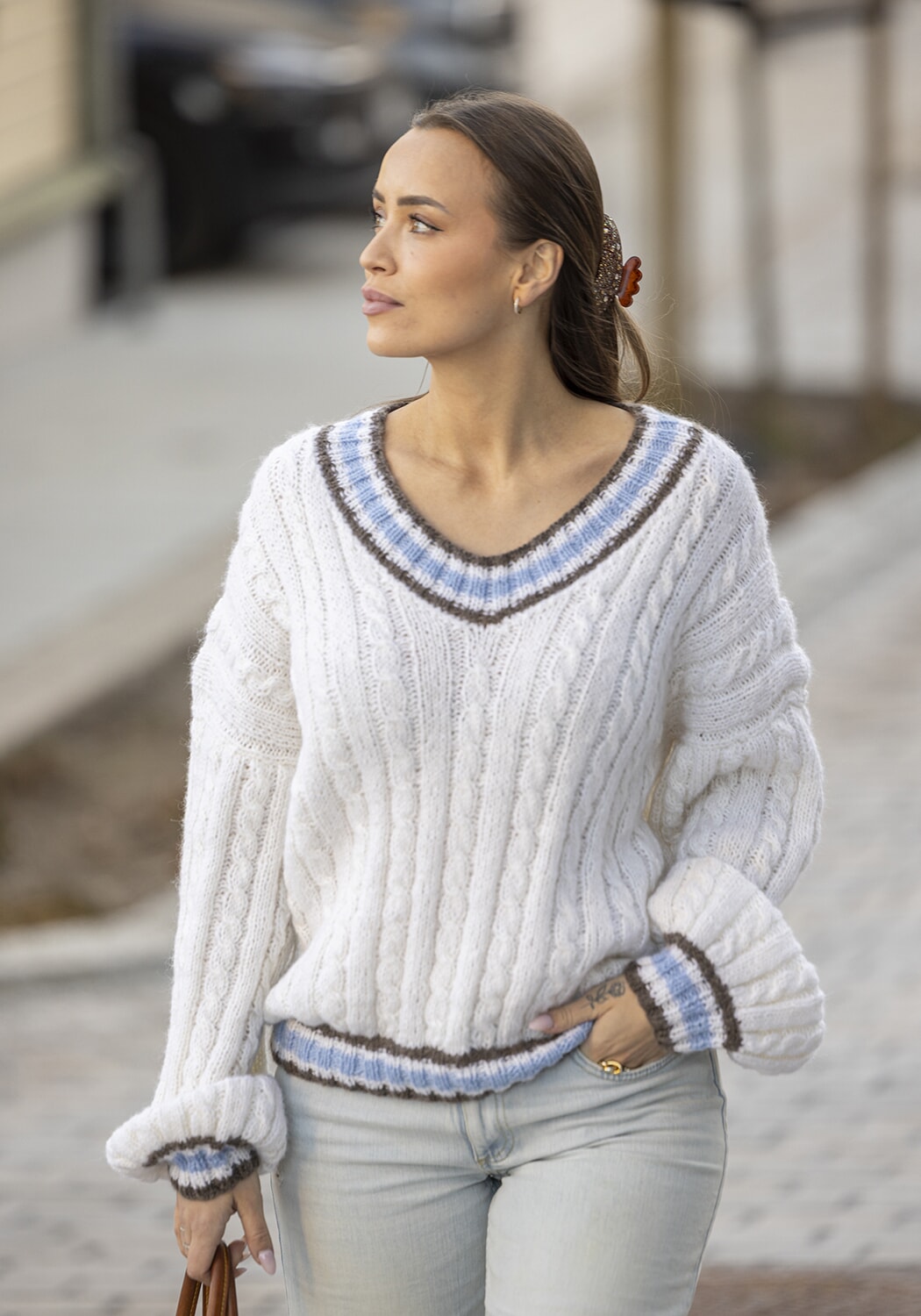 Strikkefasthet: 17 m glattstrikk i bredden på pinne nr 5 måler ca 10 cm. Husk at strikkefastheten må holdes hvis resultatet skal bli vellykket.