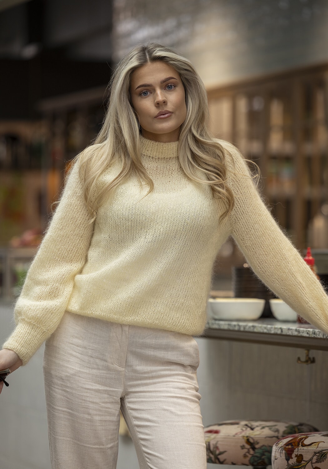 Hele plagget strikkes med 2 tråder Kid Cotton.
