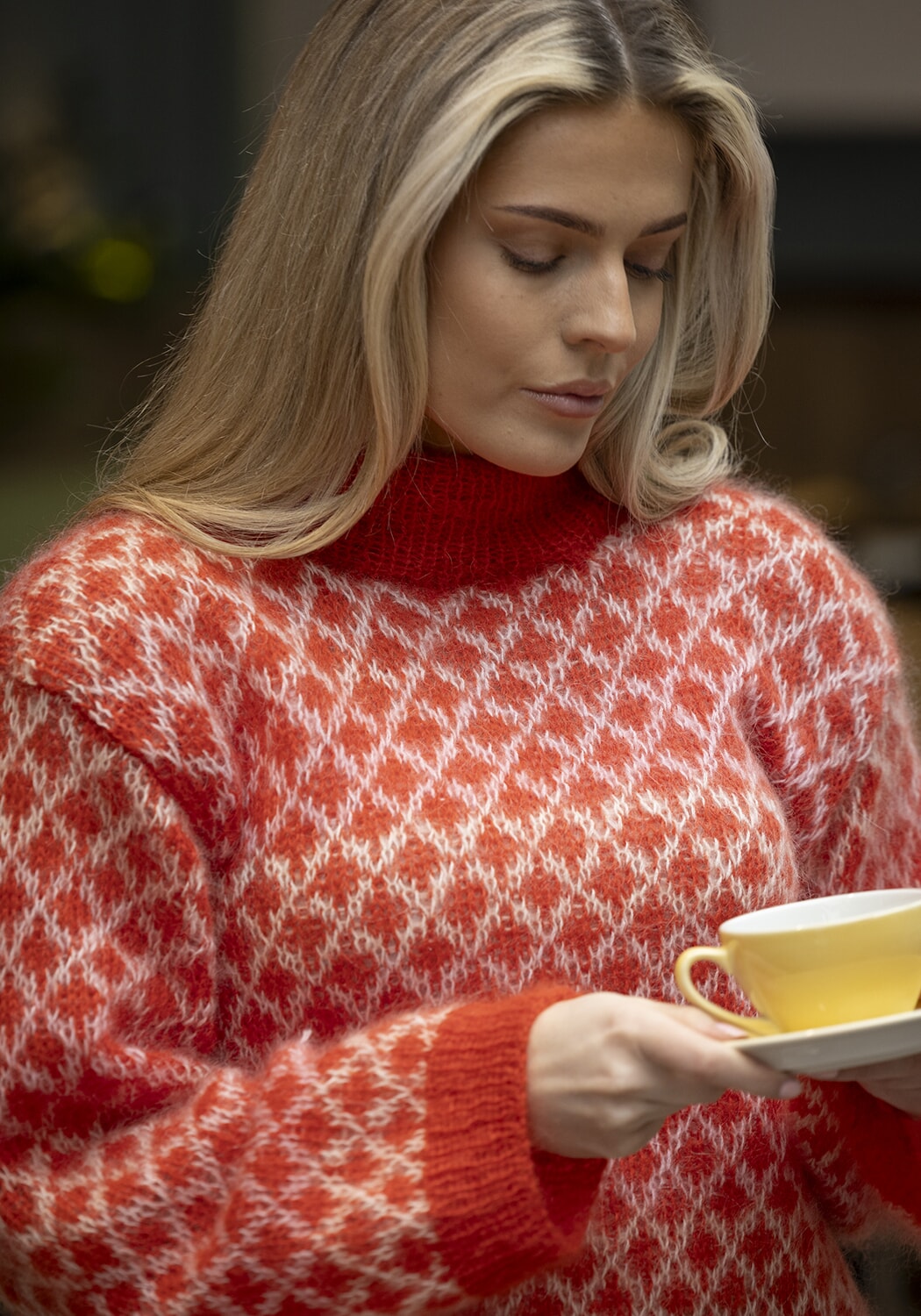 Strikkefasthet: 16 m glattstrikk i bredden med 2 tråder Kid Cotton på pinne nr 5 eller 6 måler ca 10 cm. Husk at strikkefastheten må holdes hvis resultatet skal bli vellykket.