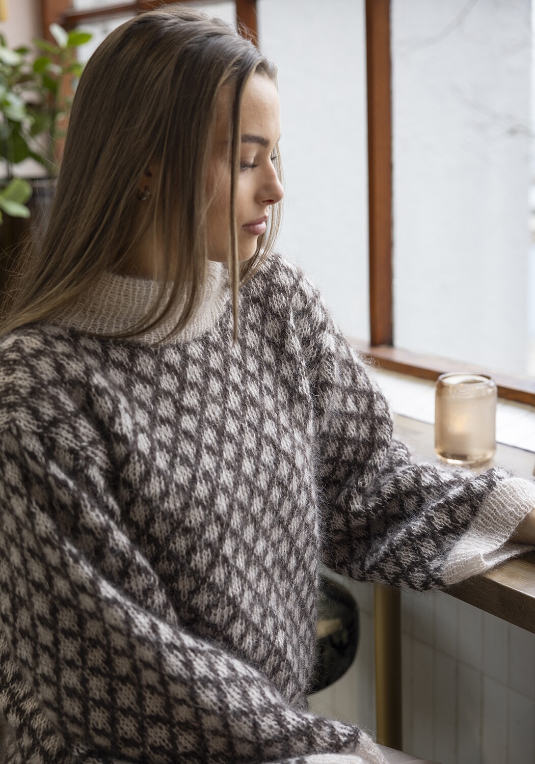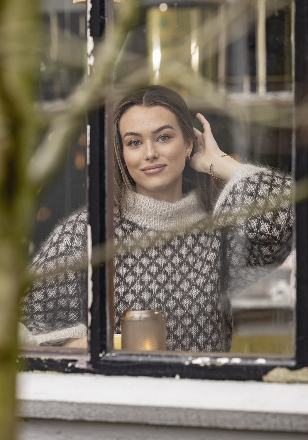 Strikkefasthet: 16 m glattstrikk i bredden med 2 tråder Kid Cotton på pinne nr 5 eller 6 måler ca 10 cm. Husk at strikkefastheten må holdes hvis resultatet skal bli vellykket.
