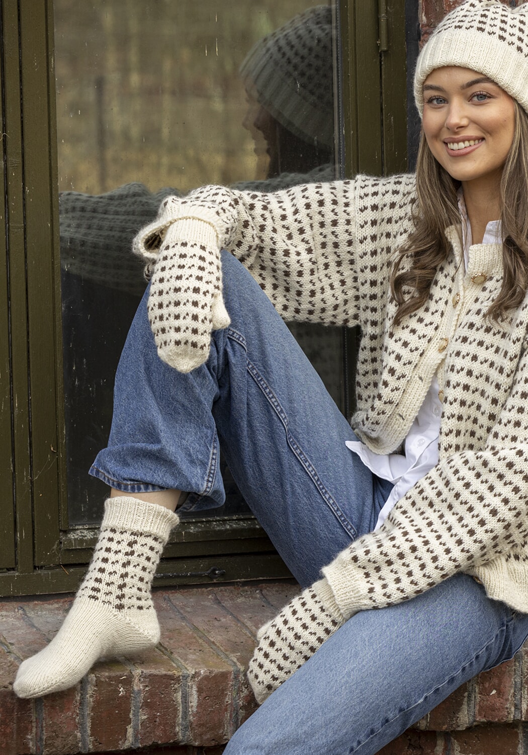 Strikkefasthet: 22 m glattstrikk i bredden på pinne nr 4 måler ca 10 cm. Husk at strikkefastheten må holdes hvis resultatet skal bli vellykket.