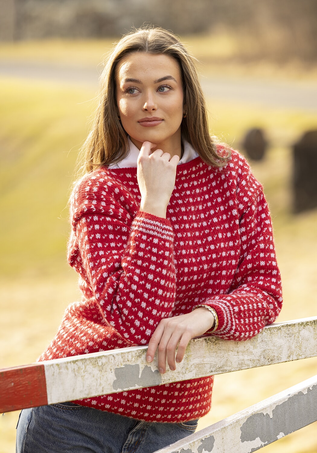 Farge 1: Rød nr 650: 9 - 10 - 11 - 11 - 12 - 13 nøster