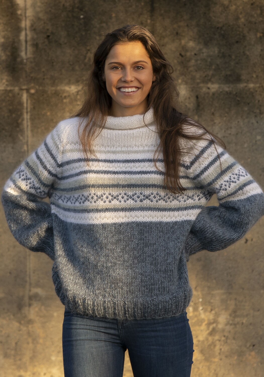 GARNALTERNATIV: Kid Silk (77% Kid Mohair, 23% silke), nøster à 25g og Alpaca Liten Storm (40% Alpakka Superfine, 40% Merino Ull, 20 % nylon fiber) nøster à 50g