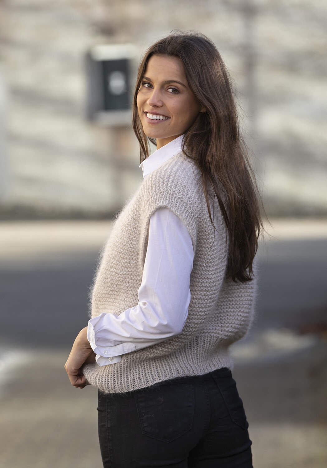 Strikkefasthet: 14 m glattstrikk i bredden med 2 tråder Kid Silk + 1 tråd Alpaca Liten Storm på pinne nr 7 måler ca 10 cm. Husk at strikkefastheten må holdes hvis resultatet skal bli vellykket.