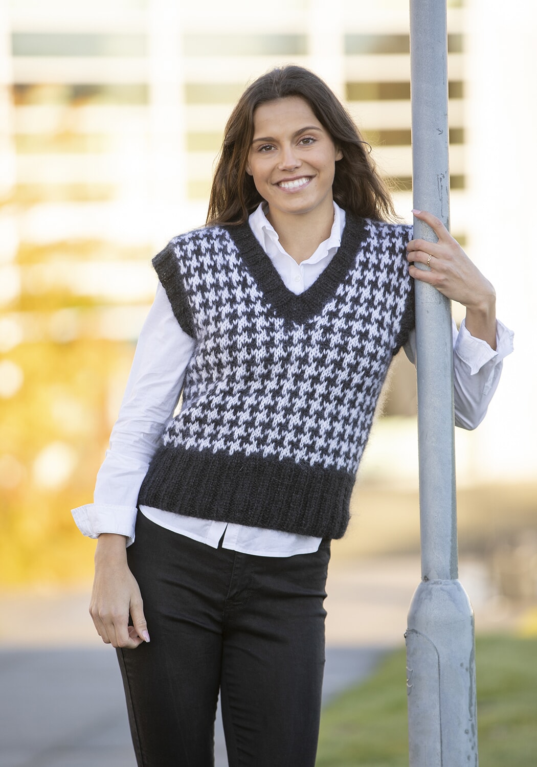 Hele plagget strikkes med 3 tråder samtidig, 1 tråd i Alpaca Liten Storm og 2 tråder i Kid Silk