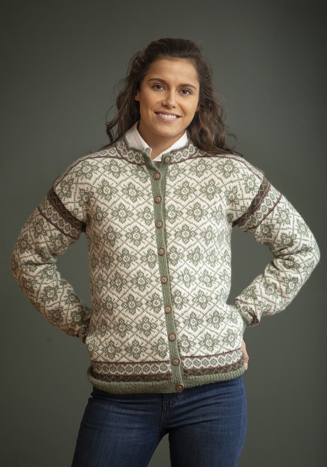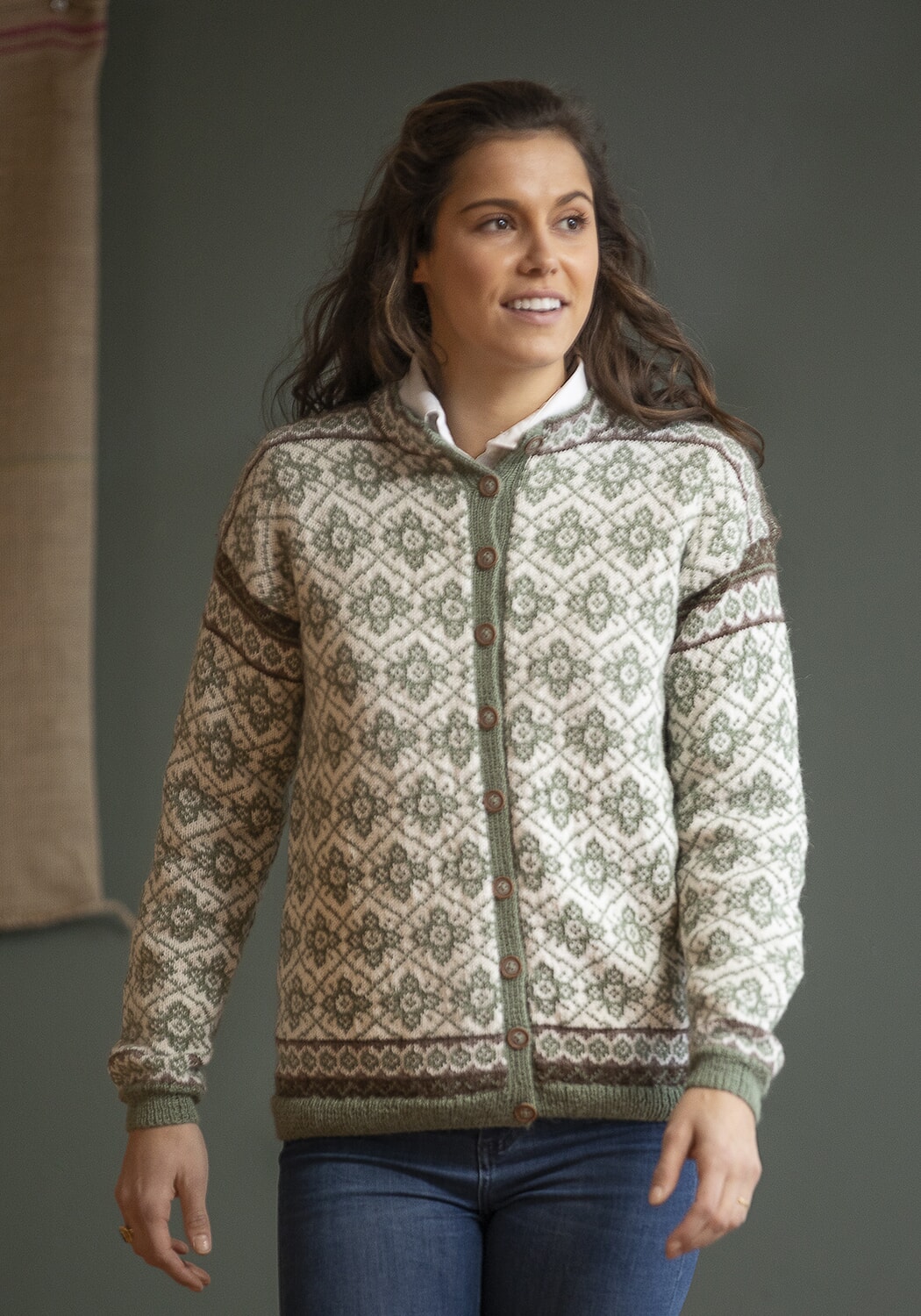 Alpaca Fine «Borghild»-kofte 2112-4 Størrelse: x/liten - liten - middels - stor - x/stor - xx/stor- xxx/stor Overvidde: 85 - 92 - 101 - 110 - 117 - 124 - 133 cm Hel lengde: 62 - 64 - 65 - 66 - 67 - 68 - 69 cm Ermelengde: 48 - 49 - 50 - 51 - 52 - 53 - 53 cm GARNALTERNATIV: Alpaca Fine (85% Superfin Alpakka, 15% Highland Ull), Baby Ull (100 % Merino, Superwashull), Bambino (50% Bomull, 50% Ekte Bambus), nøster à 50 g. Veiledende pinner og tilbehør: Pinner nr 2 ½ og 3, 10 knapper.