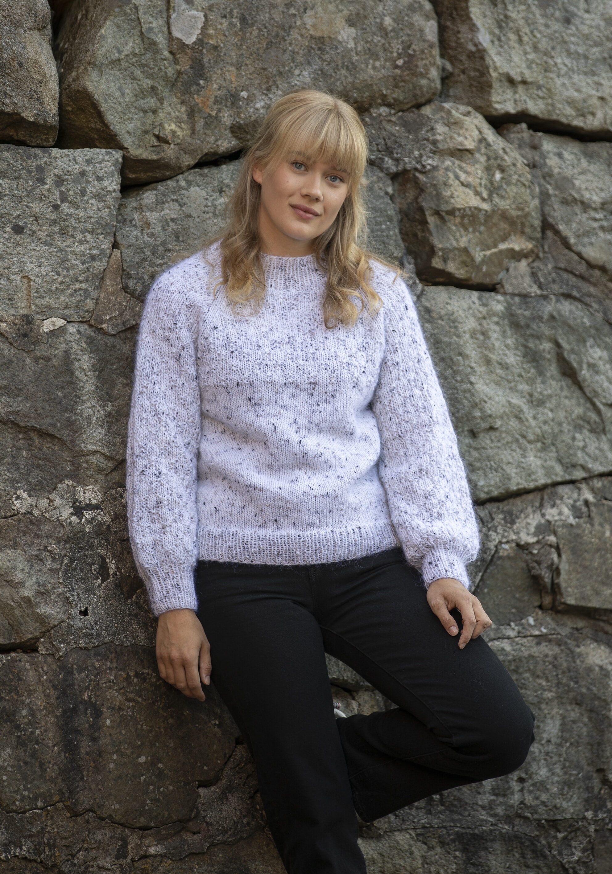 GARNALTERNATIV: Alpaca Picasso Tweed (30% Superfine Alpaca, 30% merino, 20% Donegal Tweed, 20% Nylon), nøster à 50 gr og Kid Silk (77% Kid Mohair, 23% silke), nøster à 25 gr.