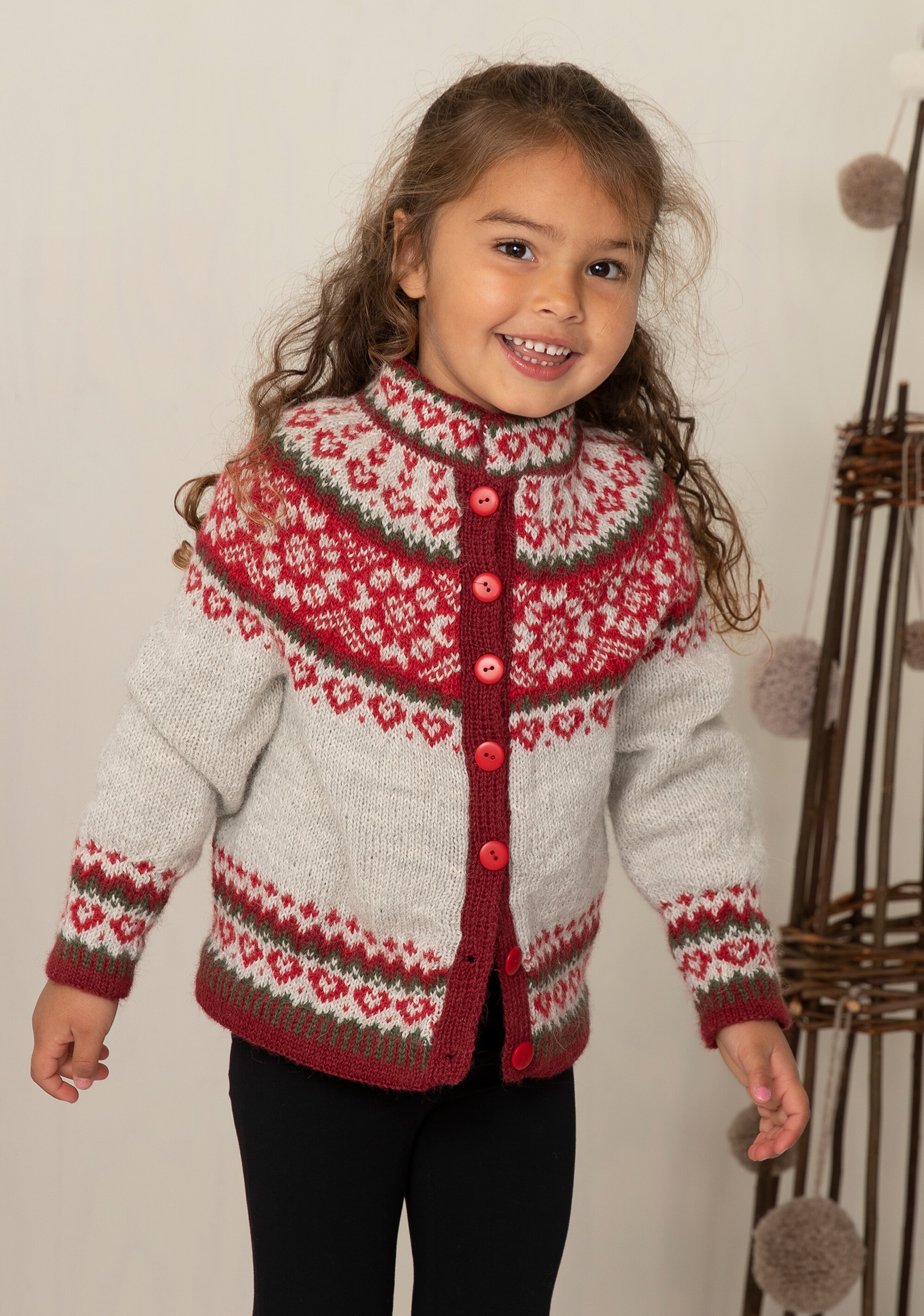 Størrelser: 2 - 4 - 6 - 8 - 10 - 12 år Overvidde: 59 - 64 - 70 - 75 - 81 - 87 cm Hel lengde: 34 - 38 - 42 - 46 - 50 - 54 cm Ermelengde: 24 - 28 - 32 - 36 - 40 - 45 cm GARNALTERNATIV: Alpaca Fine (85% Superfine Alpaca, 15%), Bambino (50% Bomull, 50% ekte Bambus), Viking Baby ull (100% Merinoull, Superwash), nøster 50 gram. Veiledende pinner og tilbehør: Pinner nr 2 ½ og 3. 6 - 7 - 7 - 8 - 8 - 9 knapper. Strikkefasthet: 28 m glattstrikk i bredden på pinne nr 3 måler ca 10 cm. Husk at strikkefastheten må holdes hvis resultatet skal bli vellykket.