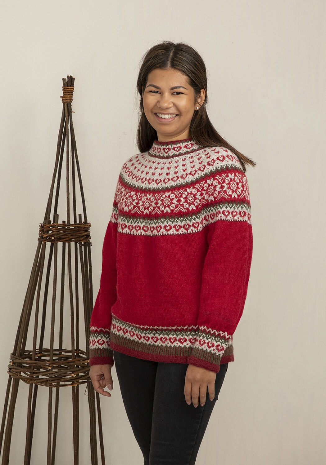 Størrelser: xx/liten - x/liten - liten - middels - stor - x/stor - xx/stor - xxx/stor Overvidde: 86 - 91 - 97 - 103 - 109 - 114 - 120 - 131 cm Hel lengde: 54 - 56 - 58 - 58 - 59 - 60 - 61 - 63 cm Ermelengde: 45 - 46 - 47 - 48 - 49 - 50 - 50 - 50 cm GARNALTERNATIV: Alpaca Fine (85% Superfine Alpaca, 15%), Bambino (50% Bomull, 50% ekte Bambus), Viking Baby Ull (100% Merinoull, Superwash), nøster 50 gram. Veiledende pinner: Pinner nr 2 ½ og 3. Strikkefasthet: 28 m glattstrikk i bredden på pinne nr 3 måler ca 10 cm. Husk at strikkefastheten må holdes hvis resultatet skal bli vellykket.