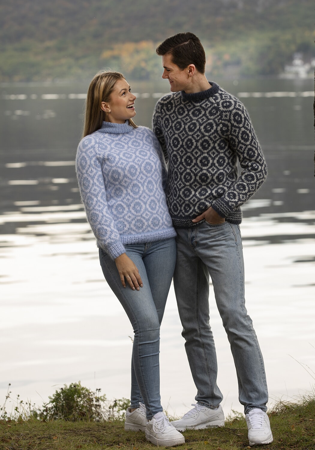 Størrelser: x/liten-liten-middels-stor-x/stor-xx/stor-xxx/stor Overvidde: 88 - 96 - 104 - 112 - 120 - 128 - 136 cm Hel lengde: 64 - 65 - 66 - 67 - 68 - 69 - 70 cm Ermelengde, dame: 44 - 45 - 46 - 47 - 48 - 49 - 50 cm Ermelengde, herre: 46 - 47 - 48 - 49 - 50 - 51 - 52 cm GARNALTERNATIV: Alpaca Bris (60% Baby Alpaca, 11% Merino Ull, 29% Nylon), nøster à 50 gr. Veiledende pinner: Pinner nr 5 og 7. Strikkefasthet: 15 m glattstrikk i bredden på pinne nr 6 eller 7 måler ca 10 cm. Husk at strikkefastheten må holdes hvis resultatet skal bli vellykket.