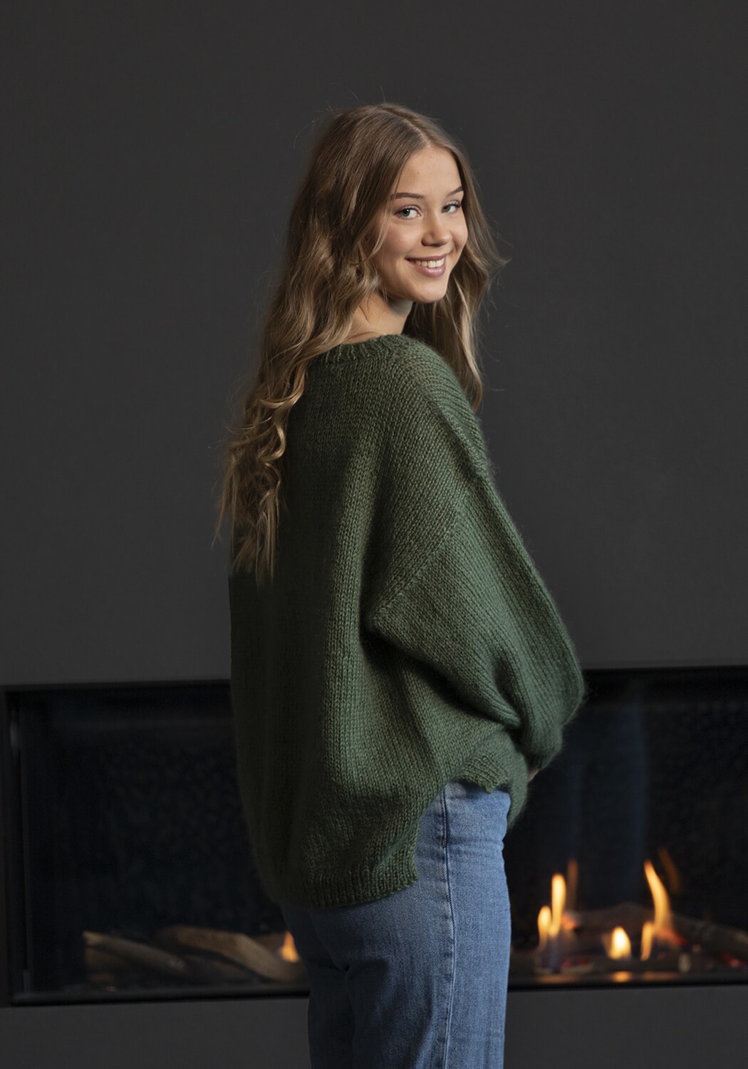 Hele plagget strikkes ovenfra og ned med 2 tråder samtidig, 1 tråd Baby Ull og 1 tråd Kid Silk