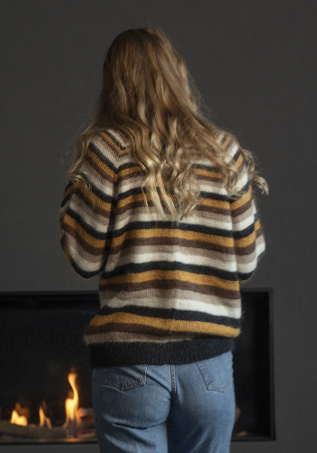 Hele plagget strikkes ovenfra og ned med 2 tråder samtidig, 1 tråd Baby Ull og 1 tråd Kid Silk
