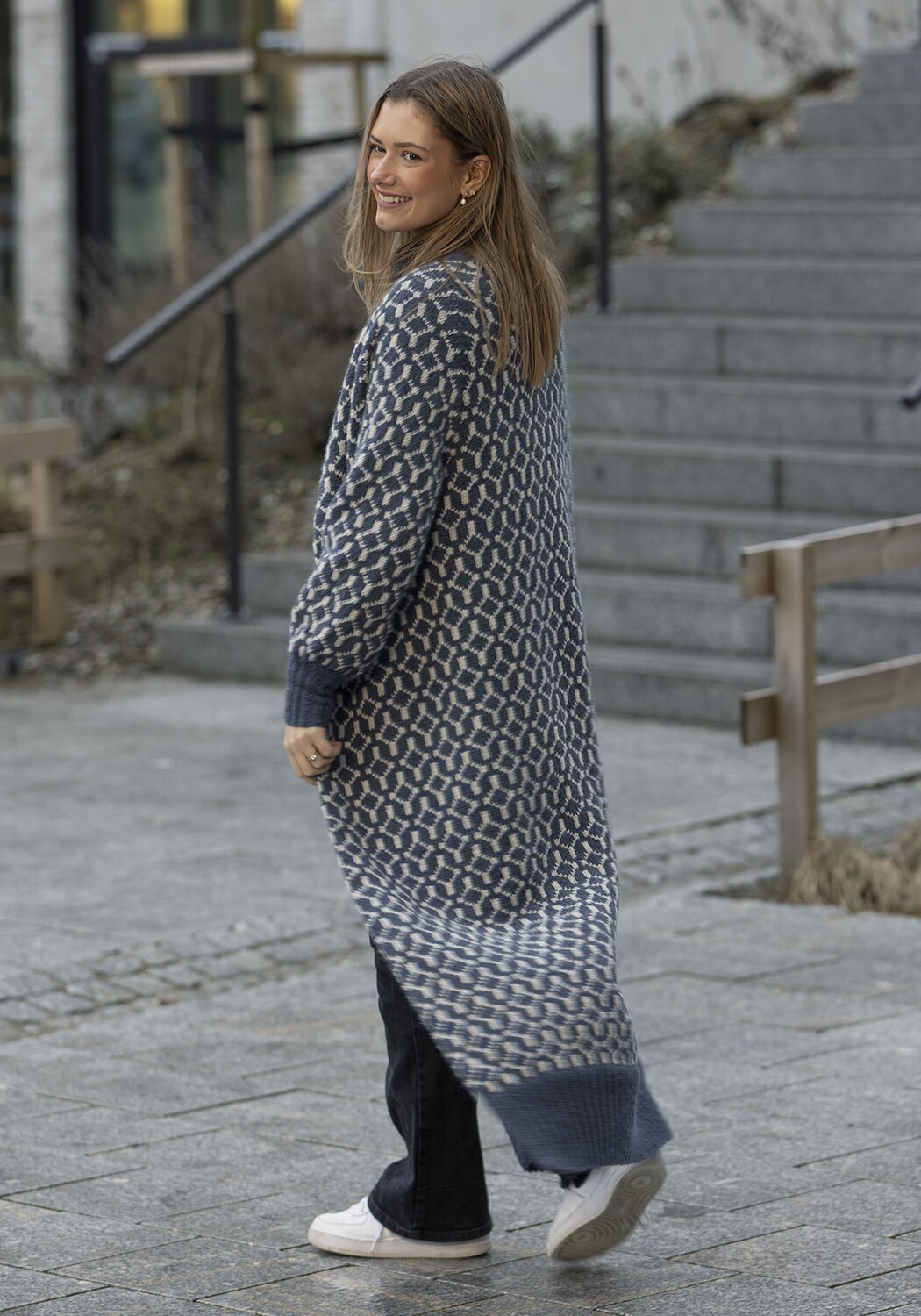 Strikkefasthet: 22 m glattstrikk i bredden på pinne nr 4 måler ca 10 cm. Husk at strikkefastheten må holdes hvis resultatet skal bli vellykket.