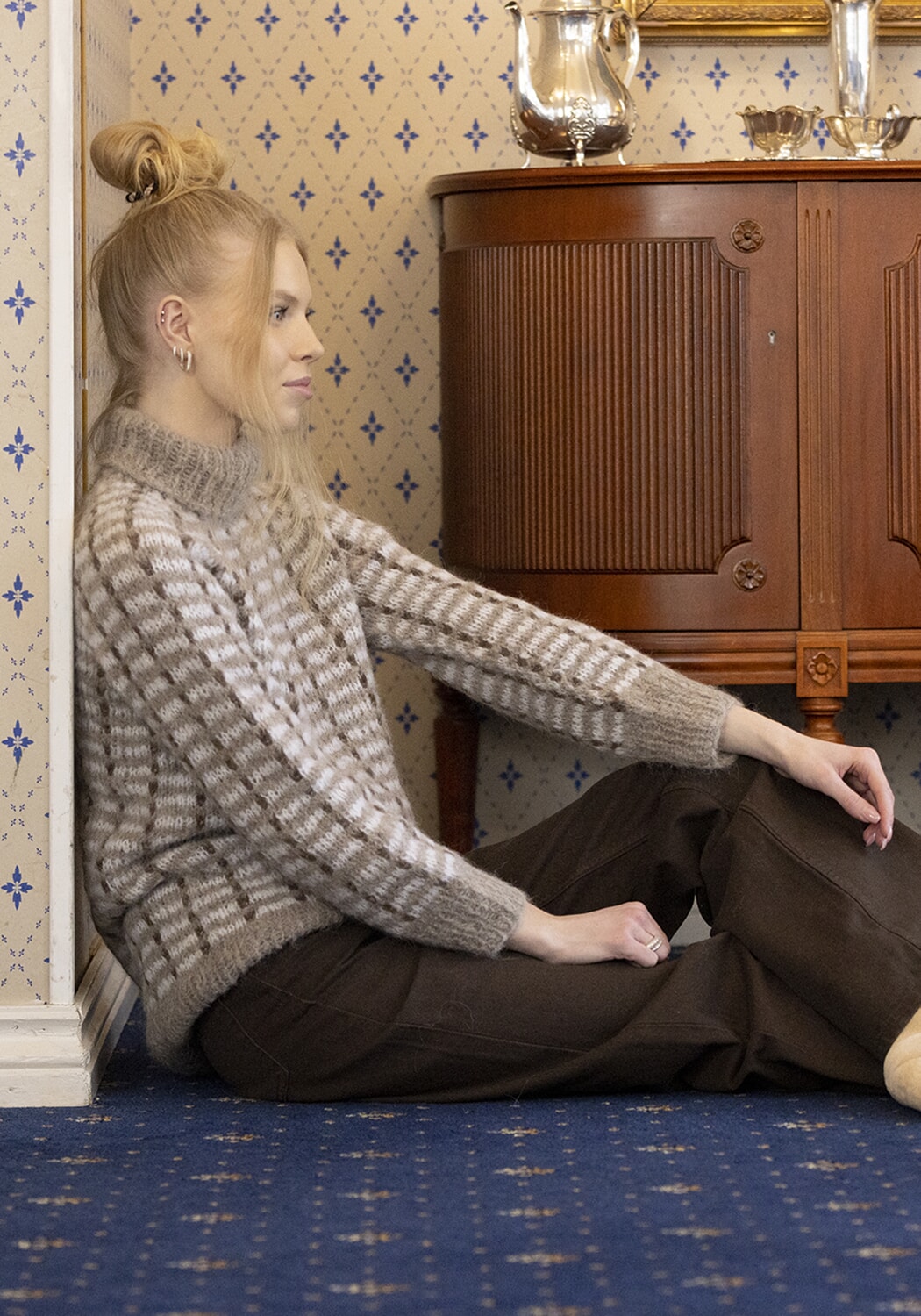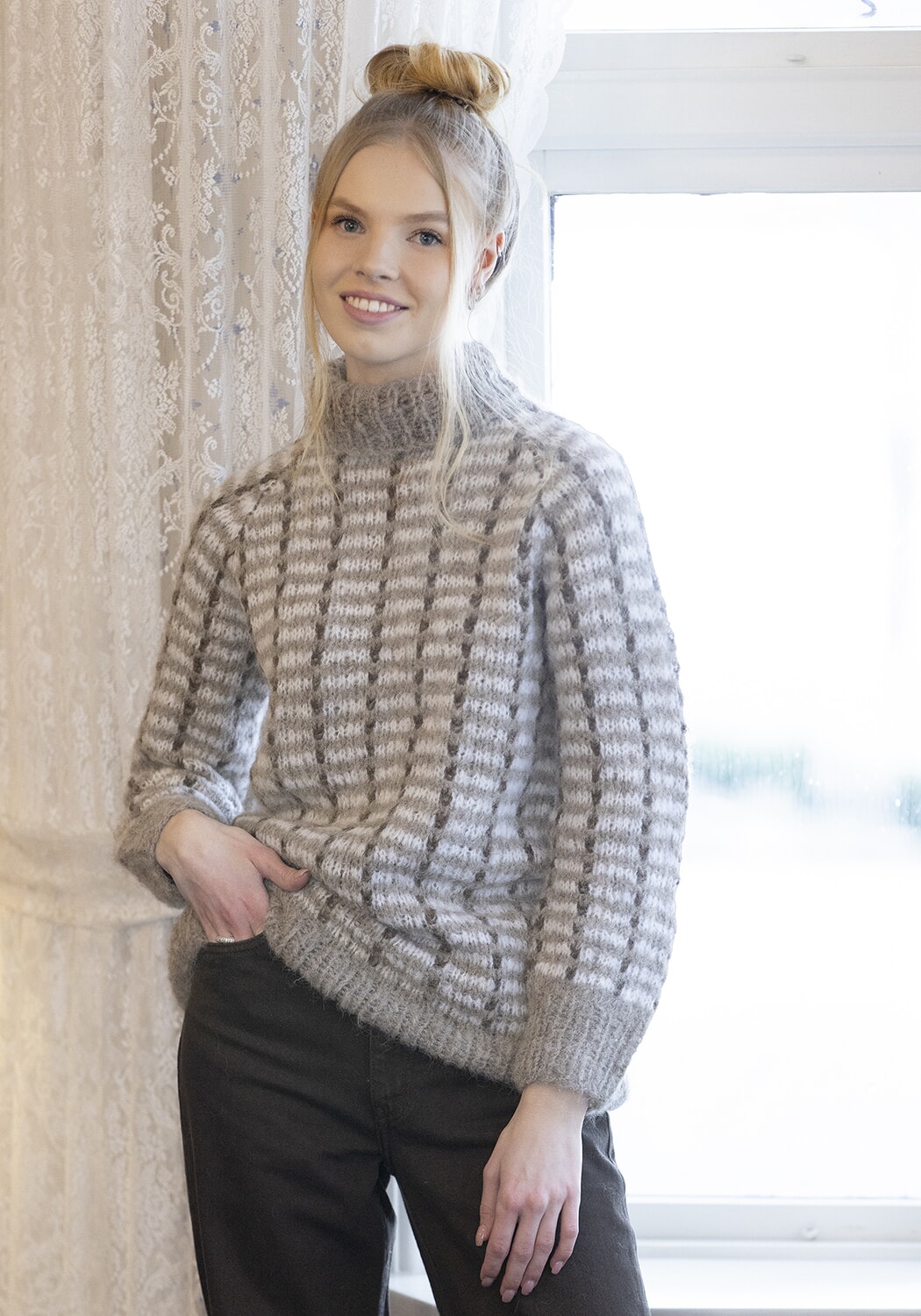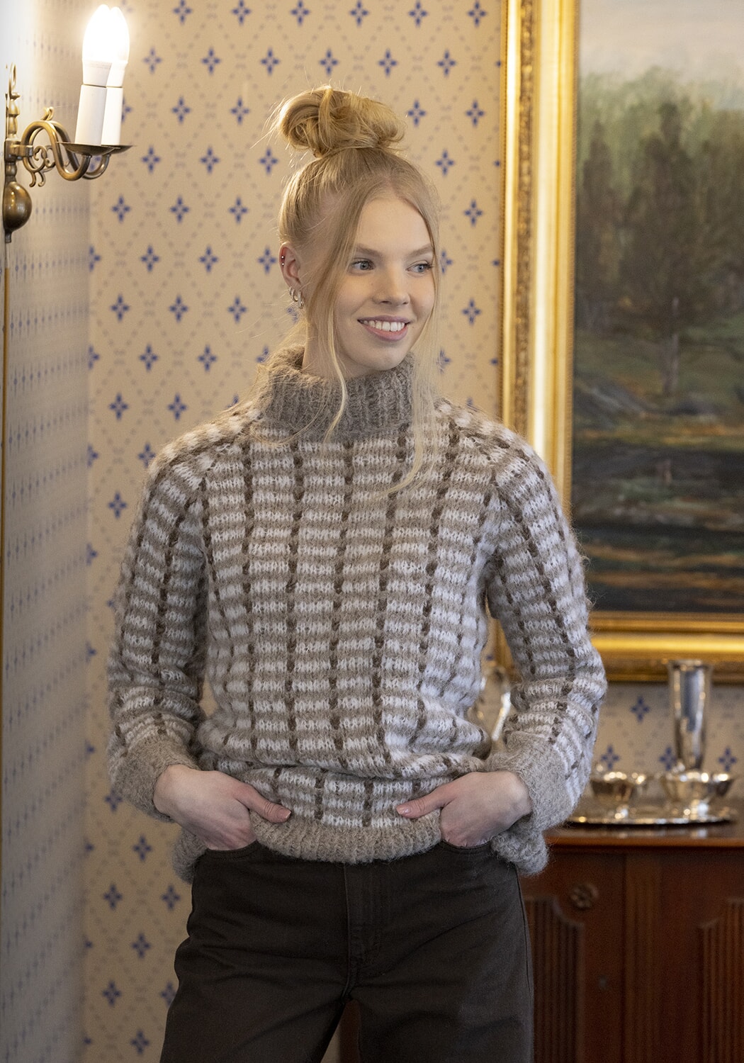GARNALTERNATIV: Alpaca Maya (82 % alpakka superfine, 13 % merino, 5 % nylon), Mohrino (50 % young goat mohair, 41 % merino ull, 9 % polyamide),
