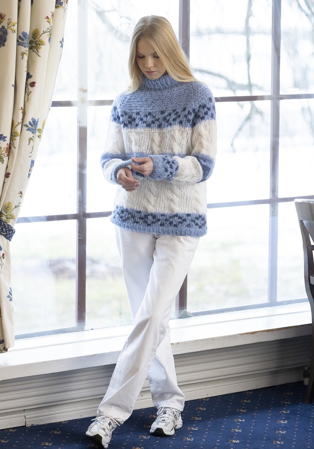 GARNALTERNATIV: Alpaca Maya (82 % alpakka superfine, 13 % merino, 5 % nylon), Mohrino (50 % young goat mohair, 41 % merino ull, 9 % polyamide),