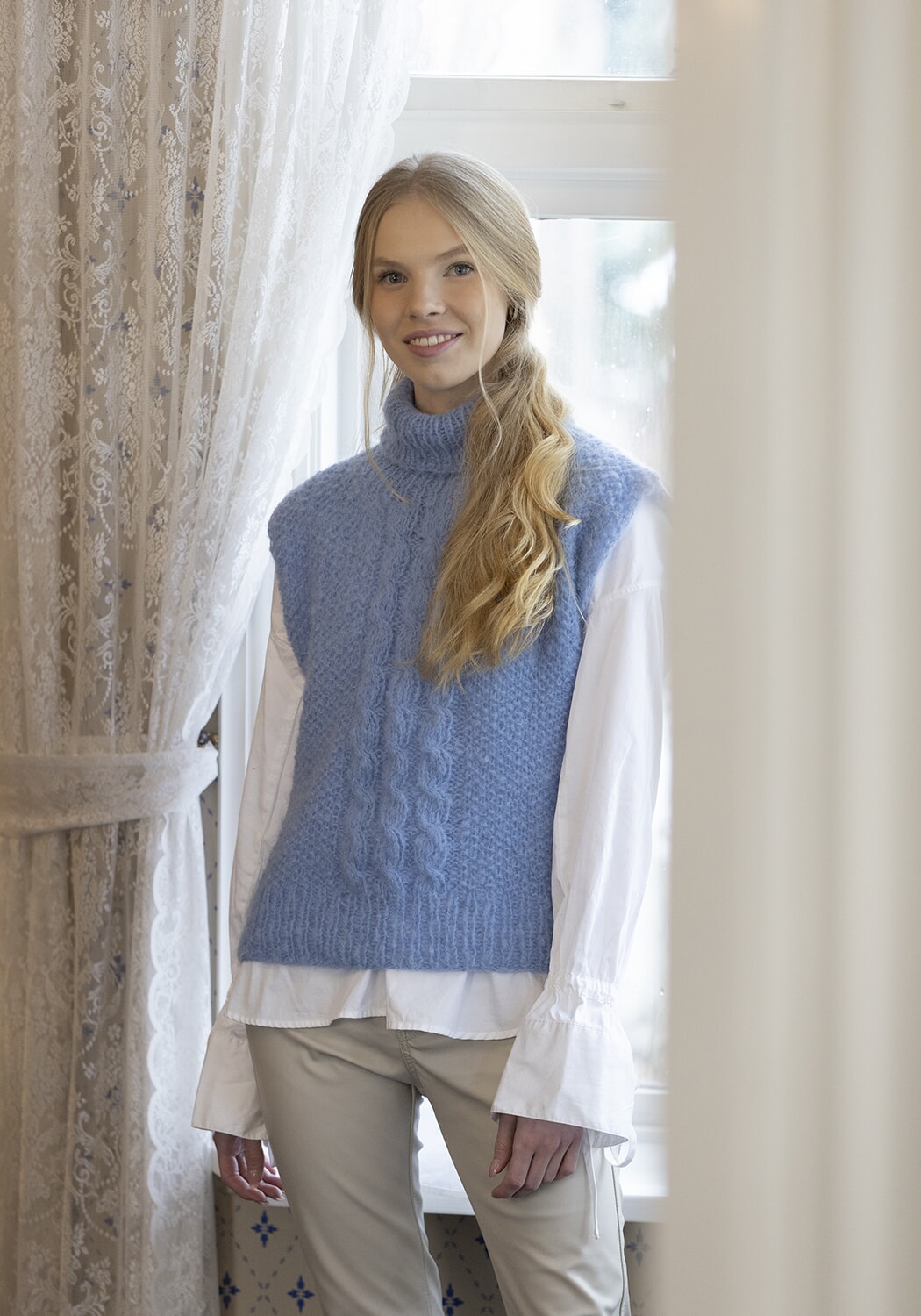GARNALTERNATIV: Alpaca Maya (82 % alpakka superfine, 13 % merino, 5 % nylon), Mohrino (50 % young goat mohair, 41 % merino ull, 9 % polyamide),