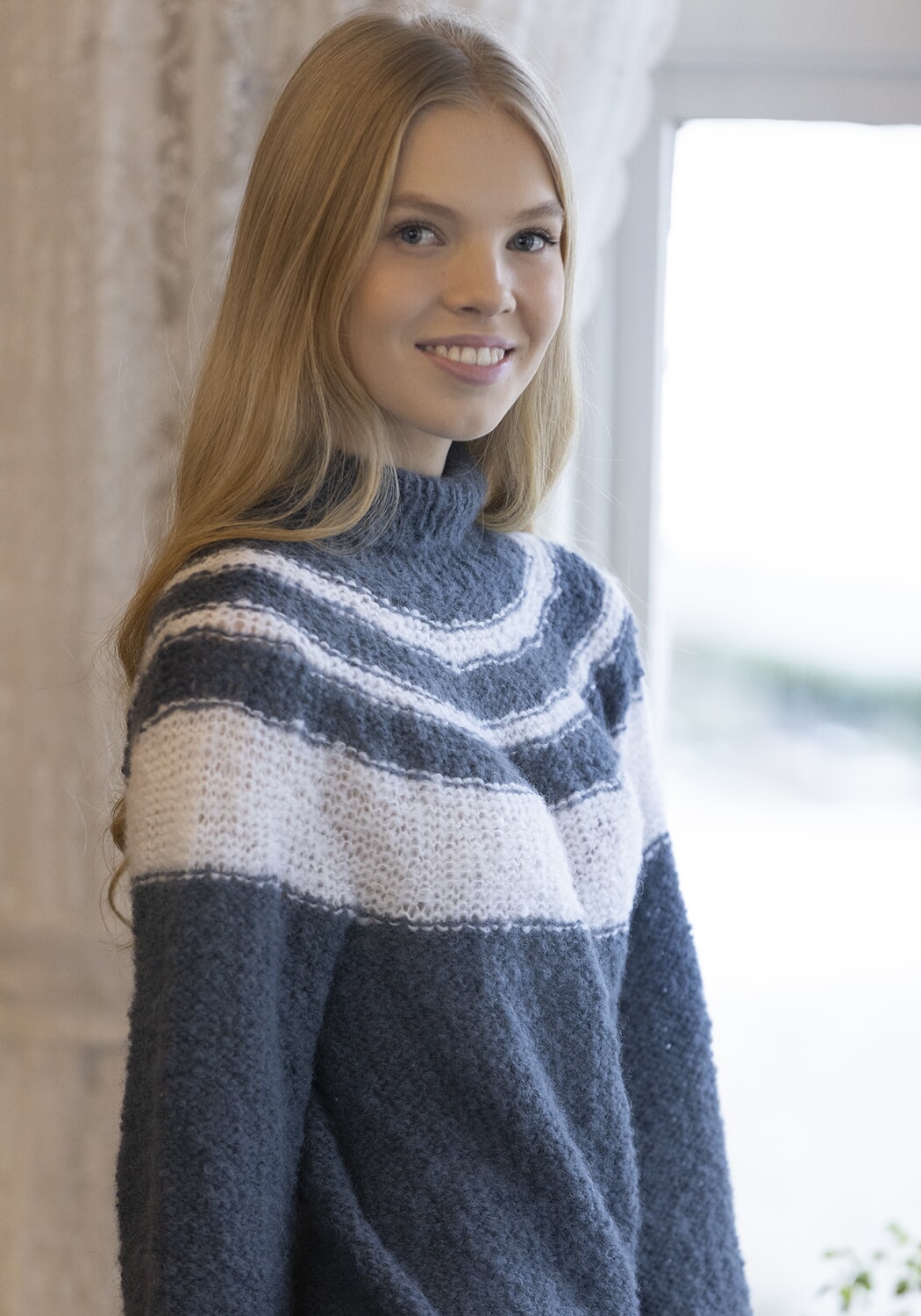 GARNALTERNATIV: Alpaca Maya (82 % alpakka superfine, 13 % merino, 5 % nylon), Mohrino (50 % young goat mohair, 41 % merino ull, 9 % polyamide),
