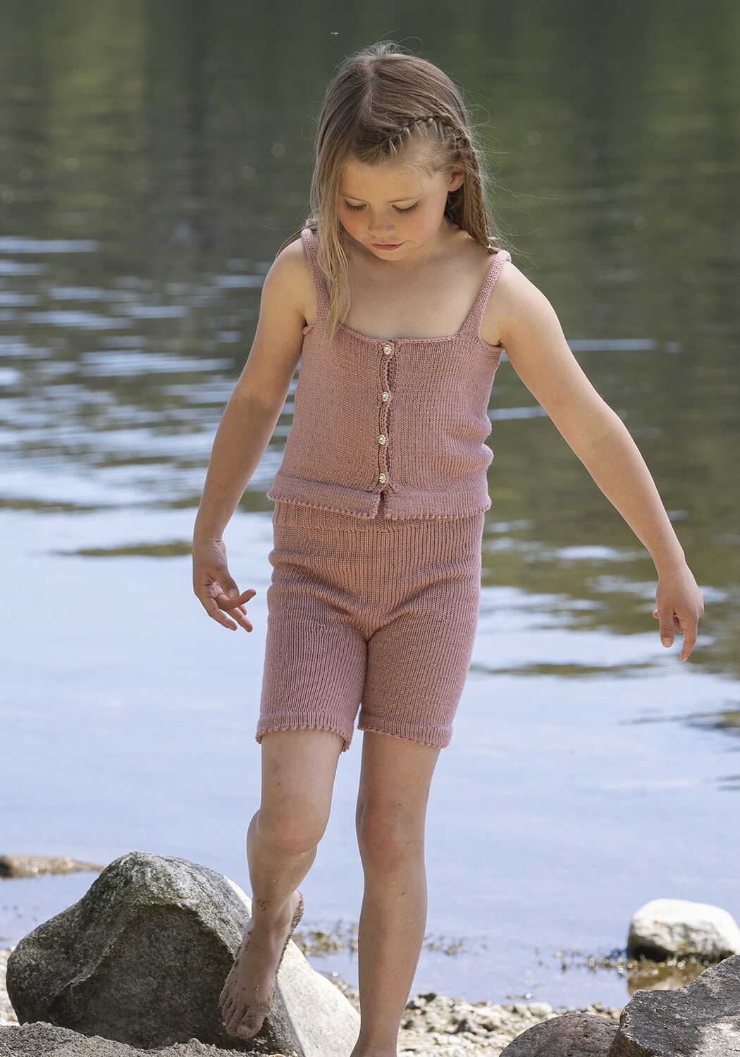 Veiledende pinner og tilbehør: Pinner nr 2 ½ og 3. Elastikk til livvidde. 4 knapper.