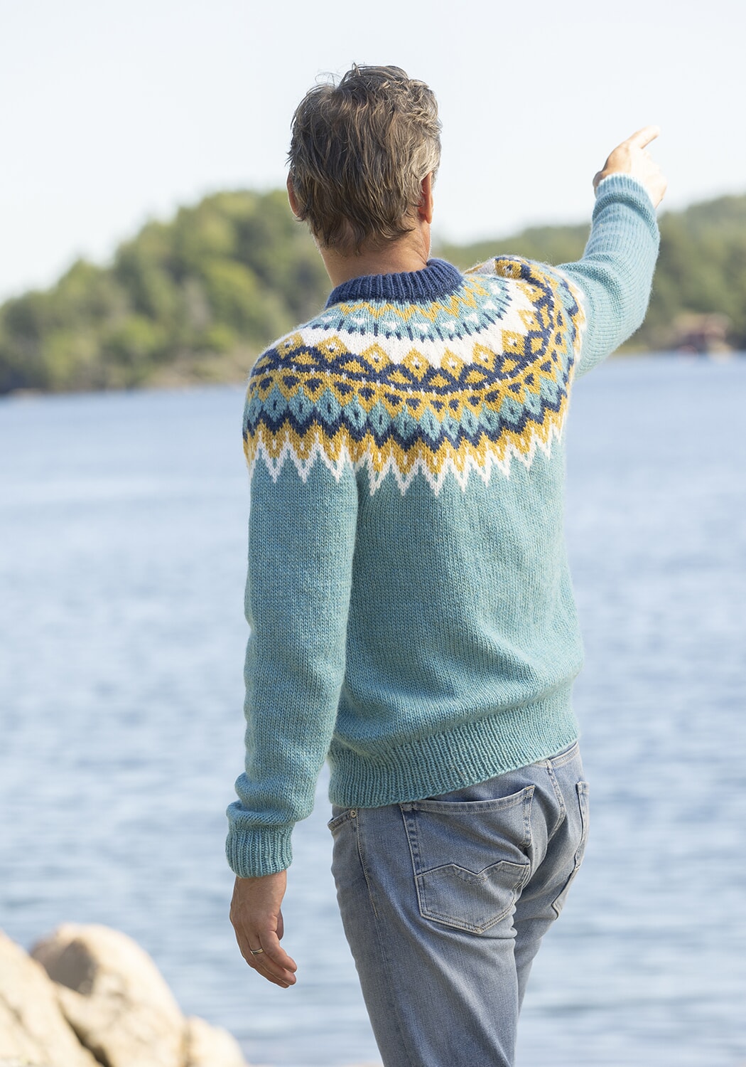 Strikkefasthet: 18 m glattstrikk i bredden på pinne nr 5 måler ca