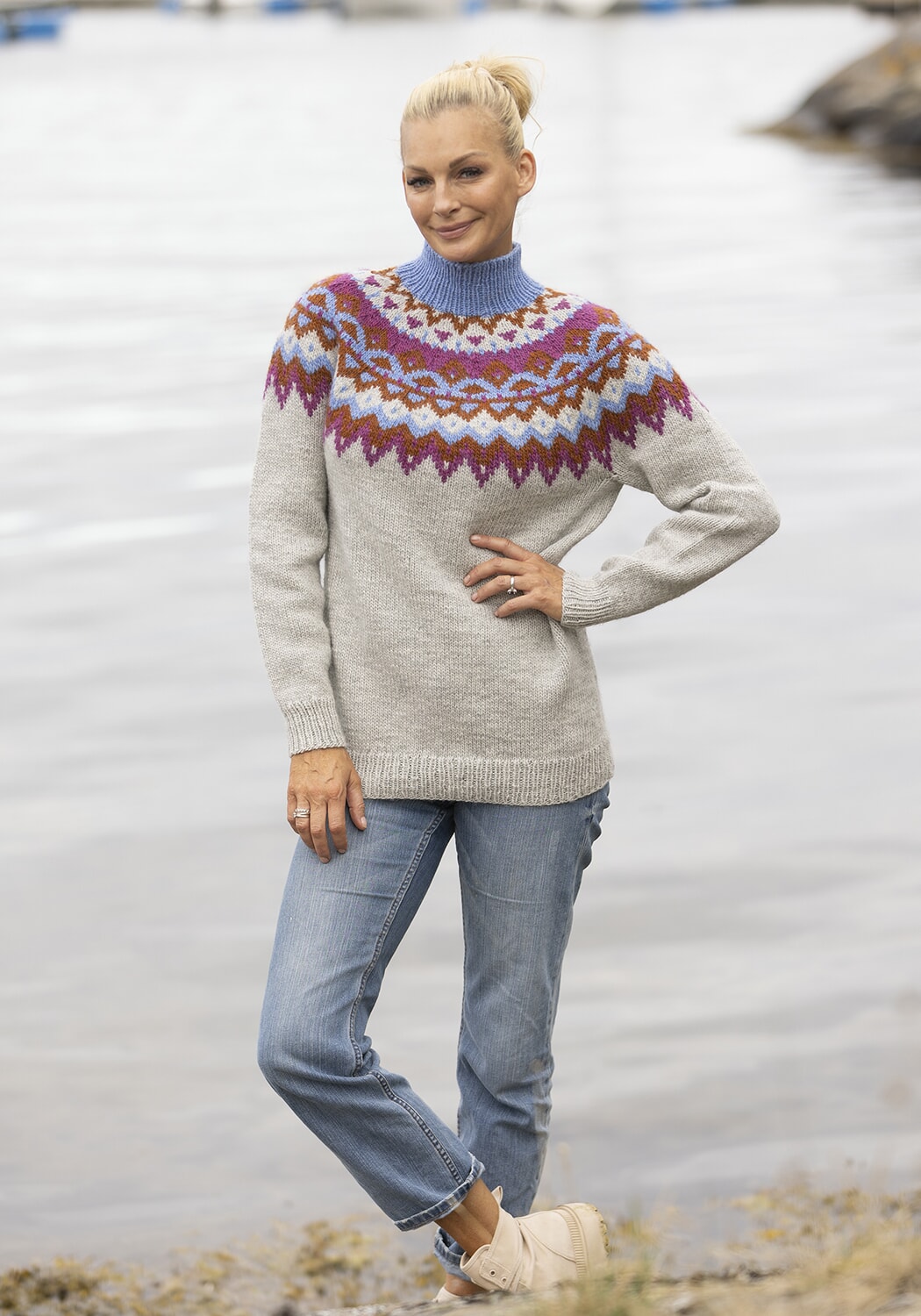 Strikkefasthet: 18 m glattstrikk i bredden på pinne nr 5 måler ca