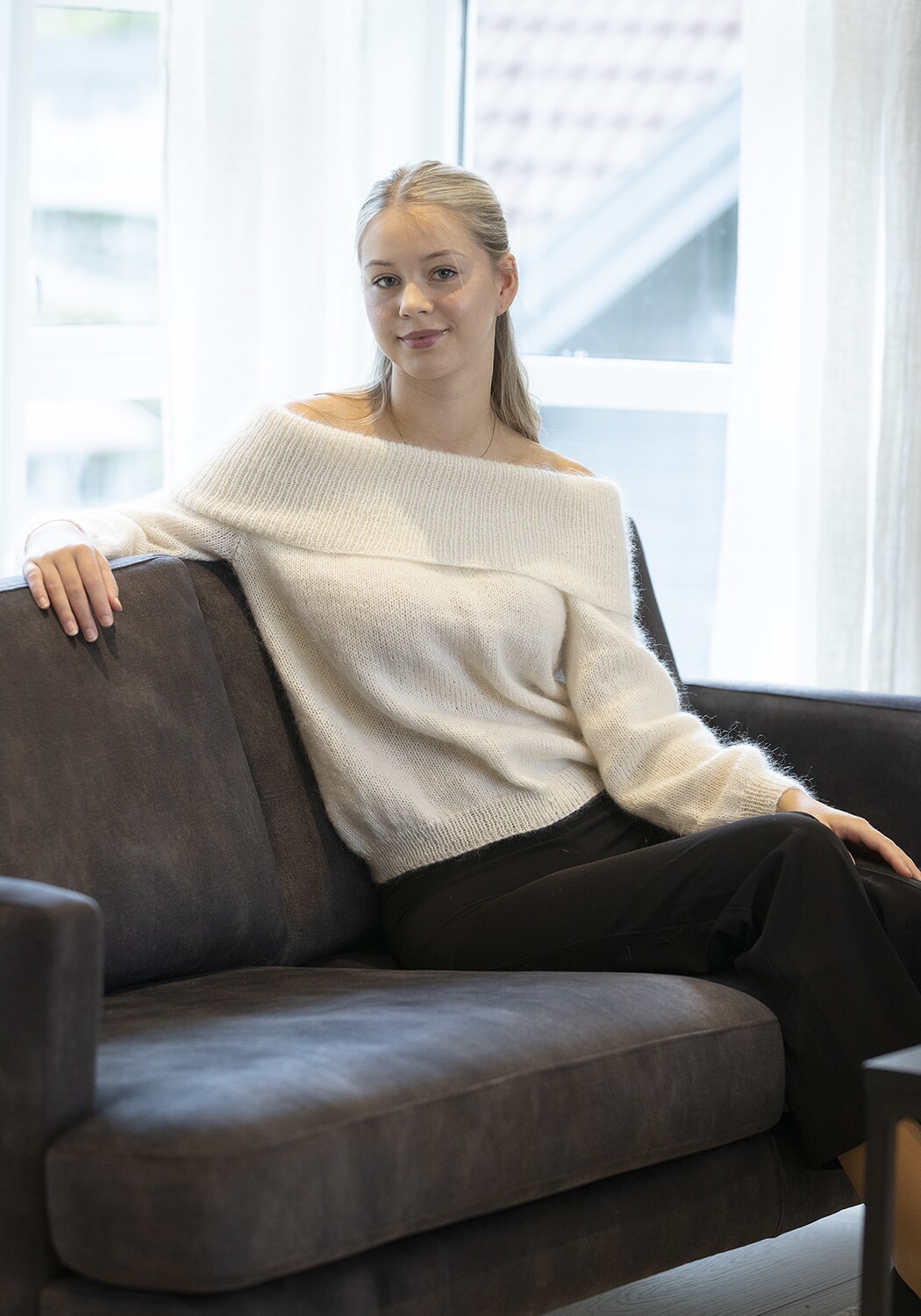 Hele plagget strikkes med 2 tråder samtidig, 1 tråd Trend Merino Petite og 1 tråd Kid Silk.