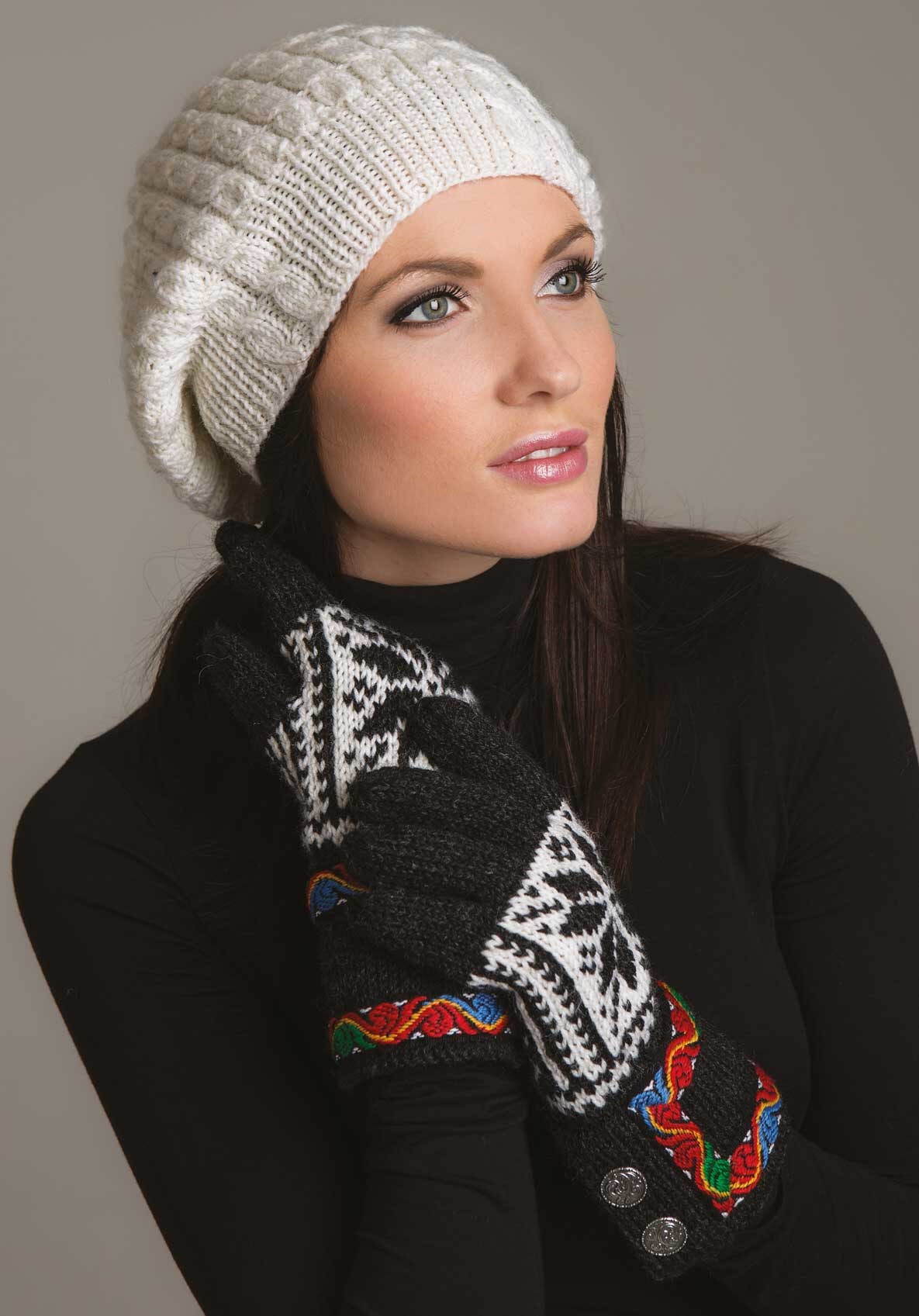 Viking Superwash Fingervanter og lue 1213-24 Størrelse Dame GARNALTERNATIV: Viking Superwash ( 100% ull, superwash ), Viking Alpaca Sport ( 30% alpakka, 40% merino ull, 30% nylon), Viking Sportsragg ( 60% ull, 20% nylon, 20% akryl), Viking Sportsgarn ( 100% ull), nøster à 50g. FINGERVANTER Koksgrått nr 117 ca 2 nøster Hvitt nr 100 ca 1 nøster LUE Hvitt nr 100 ca 4 nøster Veiledende pinner: Strømpepinner nr 3 og 3 ½. + setesdal bånd ca 1,5 meter + 4 tinnknapper Strikkefasthet: 23 m glattstrikk i bredden på pinne nr 3 ½ måler 10cm. Husk at strikkefastheten må holdes hvis resultatet skal bli vellykket.