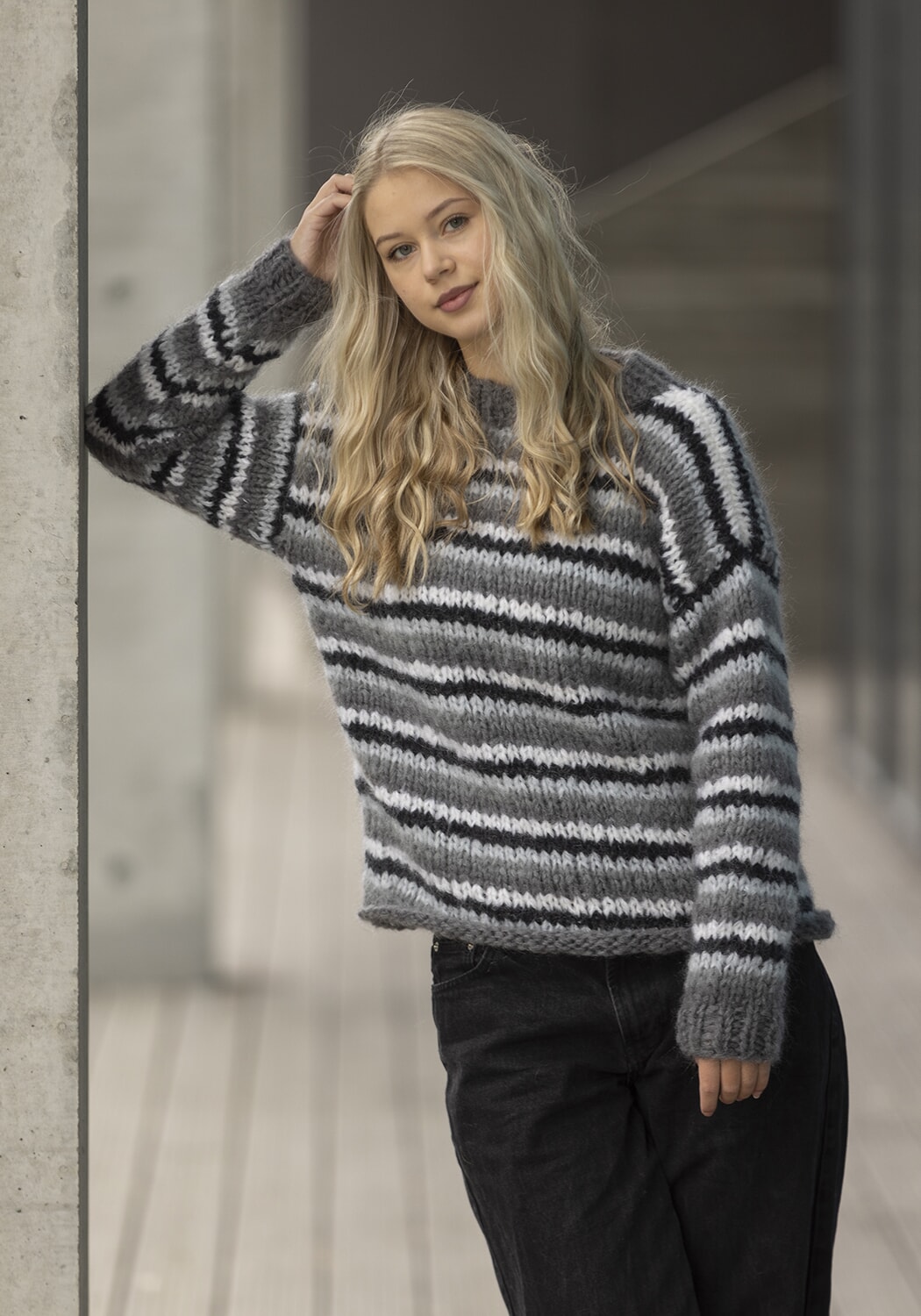 Hele plagget strikkes med dobbel tråd.