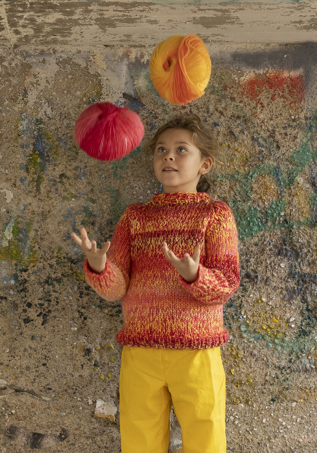 NB! Genseren er strikket i dobbelt tråd, 1 i hver farge.