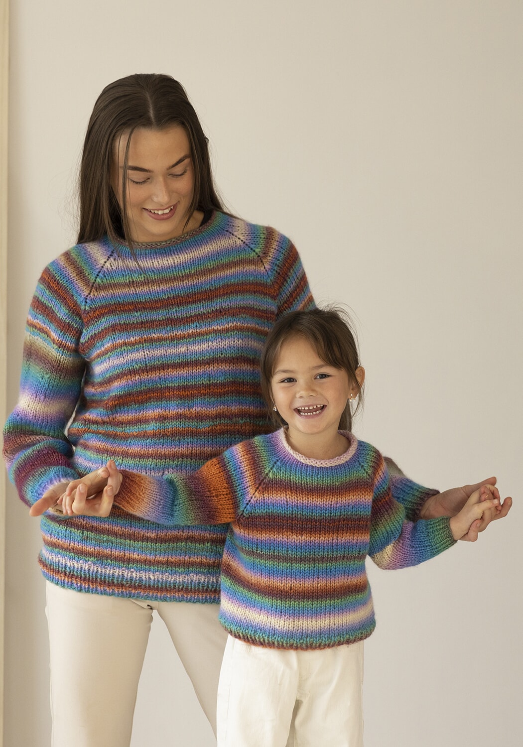 GARNALTERNATIV: Iris (80 % merinoull, superwash, 20 % nylon), Alpaca Bris Multi (42 % Baby Alpakka, 33 % Merino, 25 % Nylon), nøster à 100 g