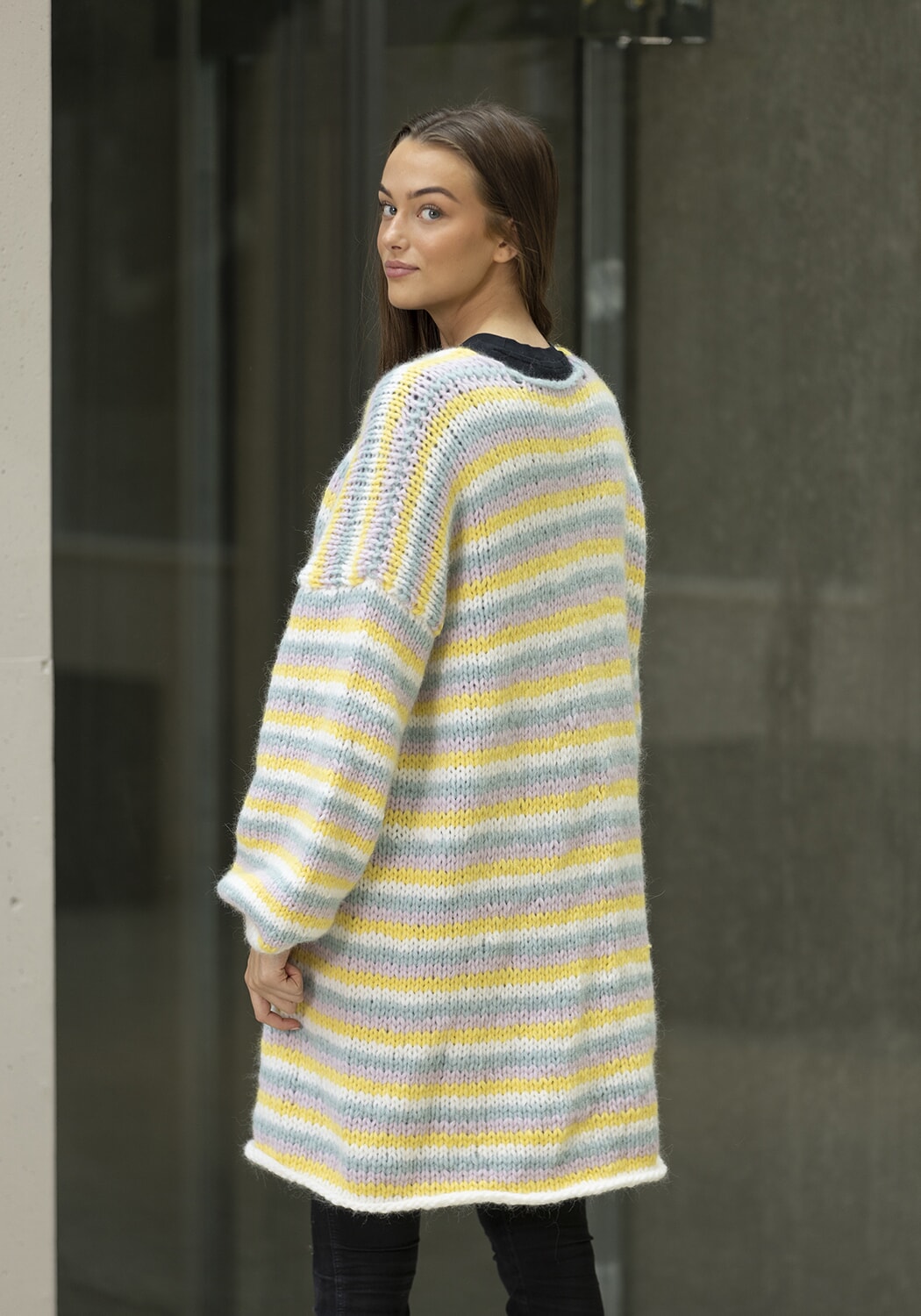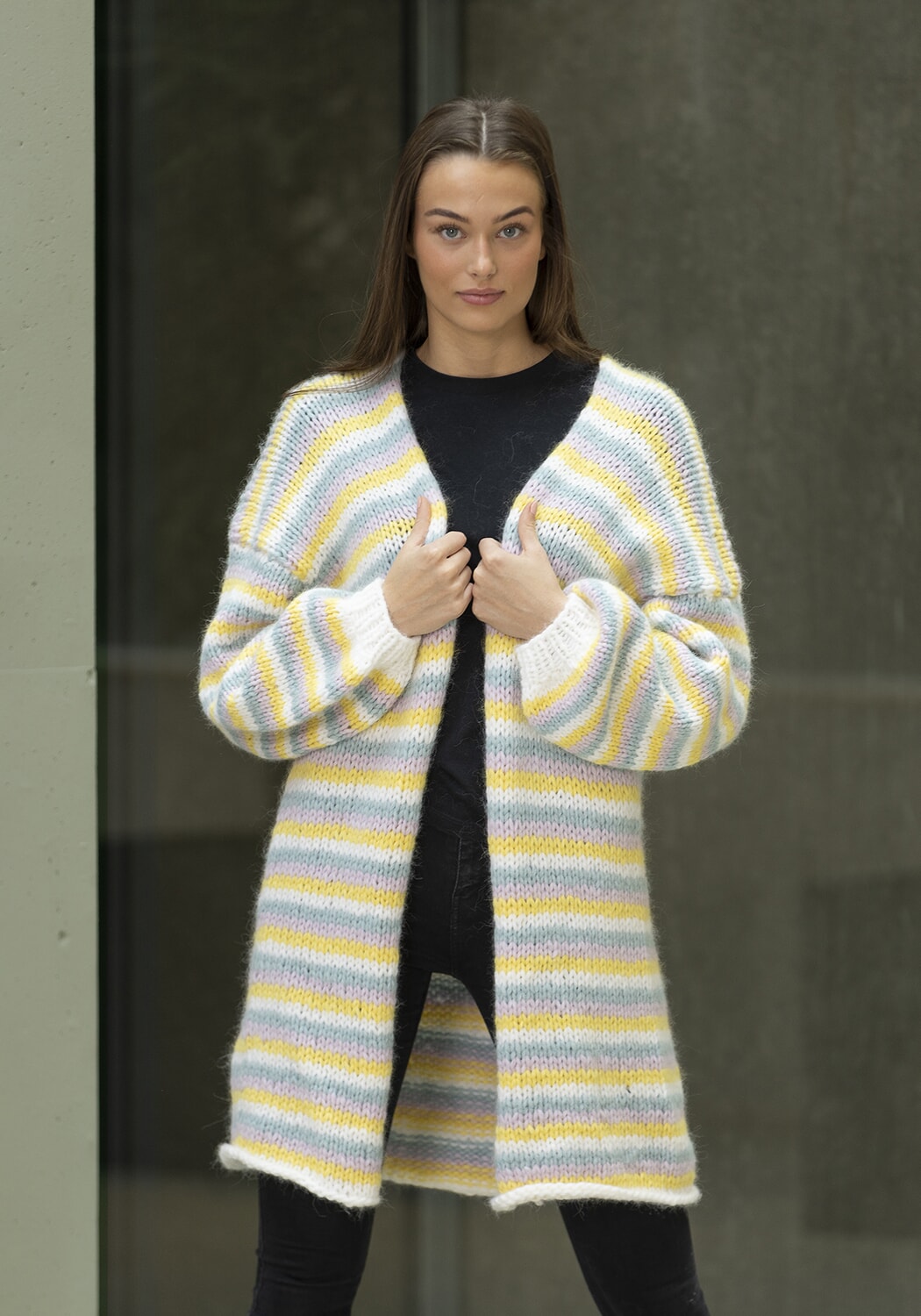 Hele plagget strikkes med dobbel tråd.