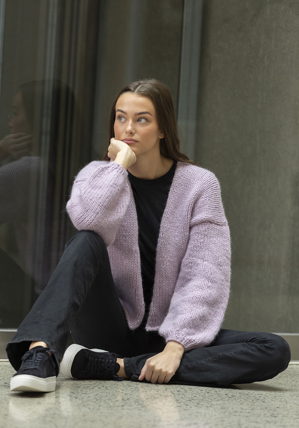 Hele plagget strikkes med dobbel tråd.