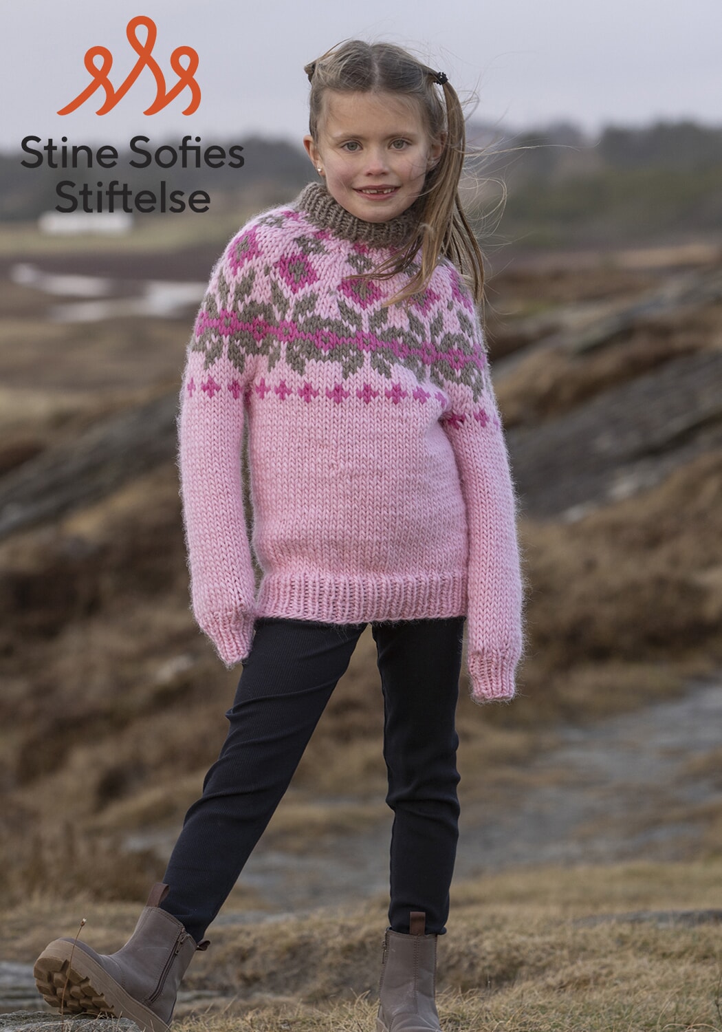 Vi i Viking Garn ønsker å støtte dette viktige arbeidet, derfor har vi designet Stine Sofie Genseren. For håp, trygghet og varme.
